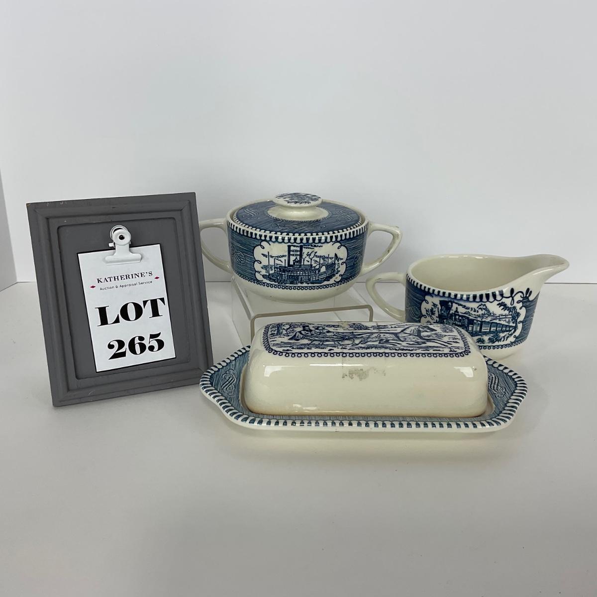 Three pieces including covered sugar container one creamier and one covered butter dish. Please see photos for details and condition. ::: Shipping is available on this lot. If you require shipping you must let us know at the close of the auction. We will coordinate with you after the item has been won. Shipping fees will include insurance up to or exceeding the value of all items being mailed. If you have any questions regarding this lot please contact the auctioneer either via this website, by direct email or by phone. PICK UP TIMES and other important information can be found in the TERMS and DESCRIPTION of the auction. Please take a look for pertinent information. Thanks!