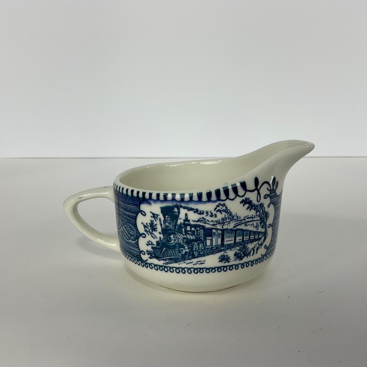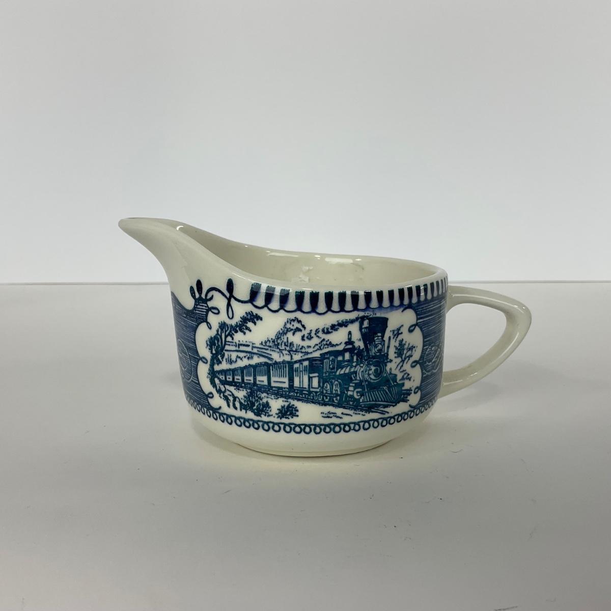 -265- GLASSWARE | Currier & Ives | Covered Sugar, Creamer, Salt & Pepper Shaker