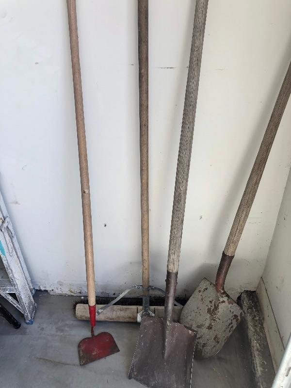 including flat head shovel round shovel hole and push broom Heavily used condition This is an ONSITE Auction all items will need to be picked up on location. Please see auction description for pick up procedures. Shipping is available on smaller items.