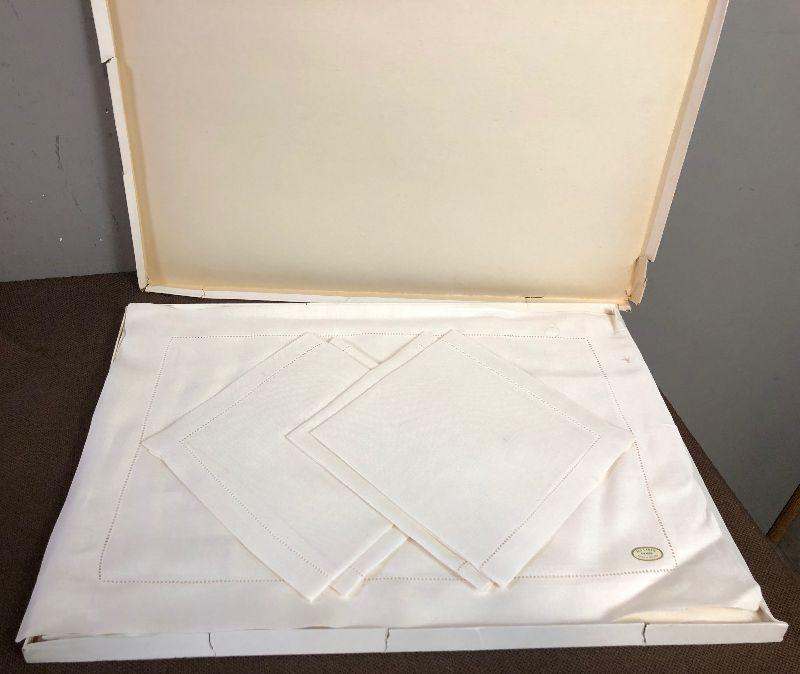 4 Napkins, and 4 placemats - Lovely! Minimal yet antique and never been used. Good Deal!