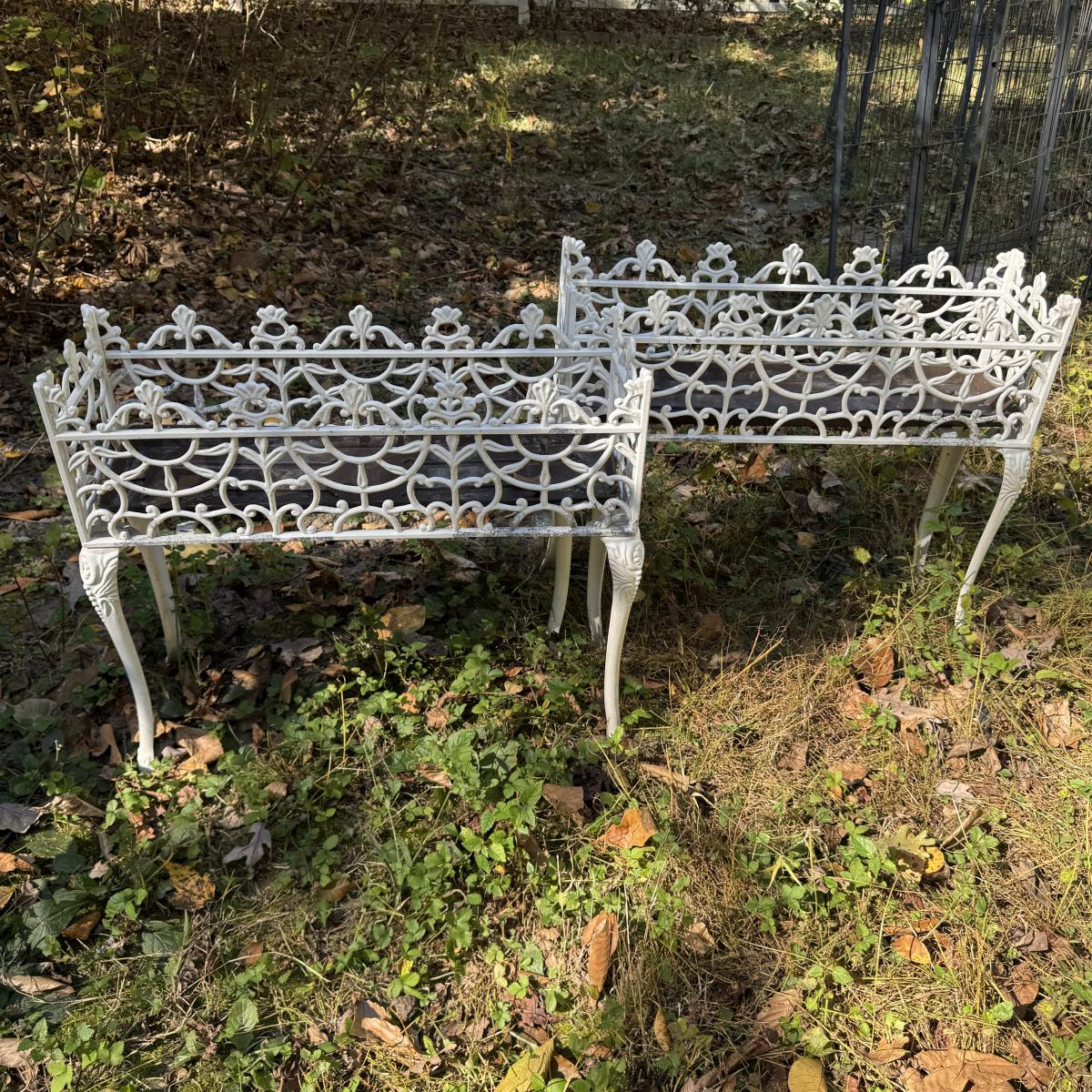 Pair of Aluminum White Planter Stands. Good overall shape.