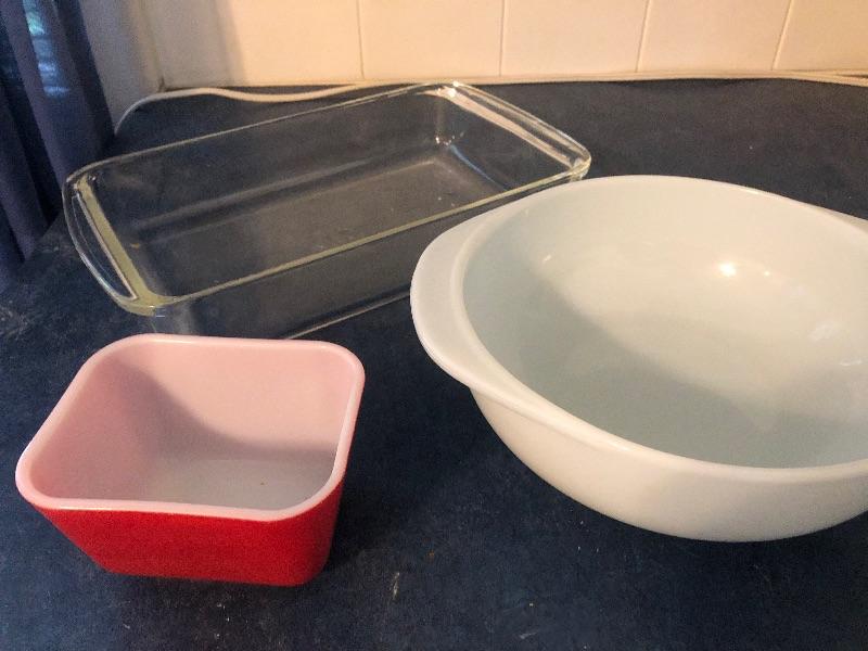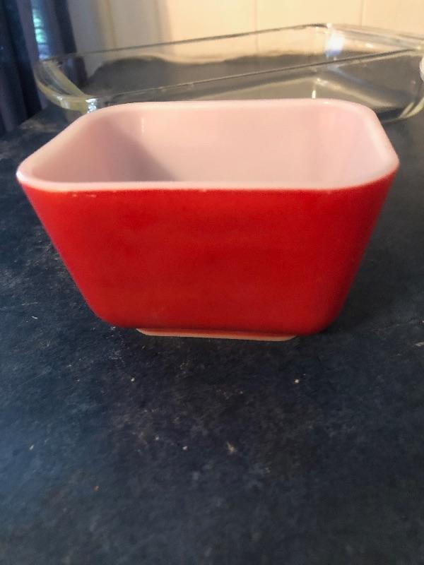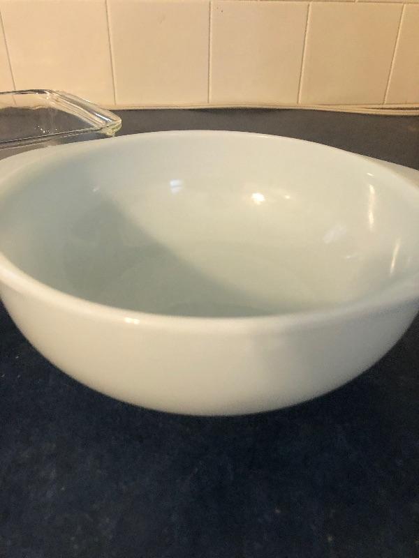 Good used condition comes with Pyrex mixing bowl white glass clear glass half pound and Friggie, in red. Great condition. This is an ONSITE Auction all items will need to be picked up on location. Please see auction description for pick up procedures.