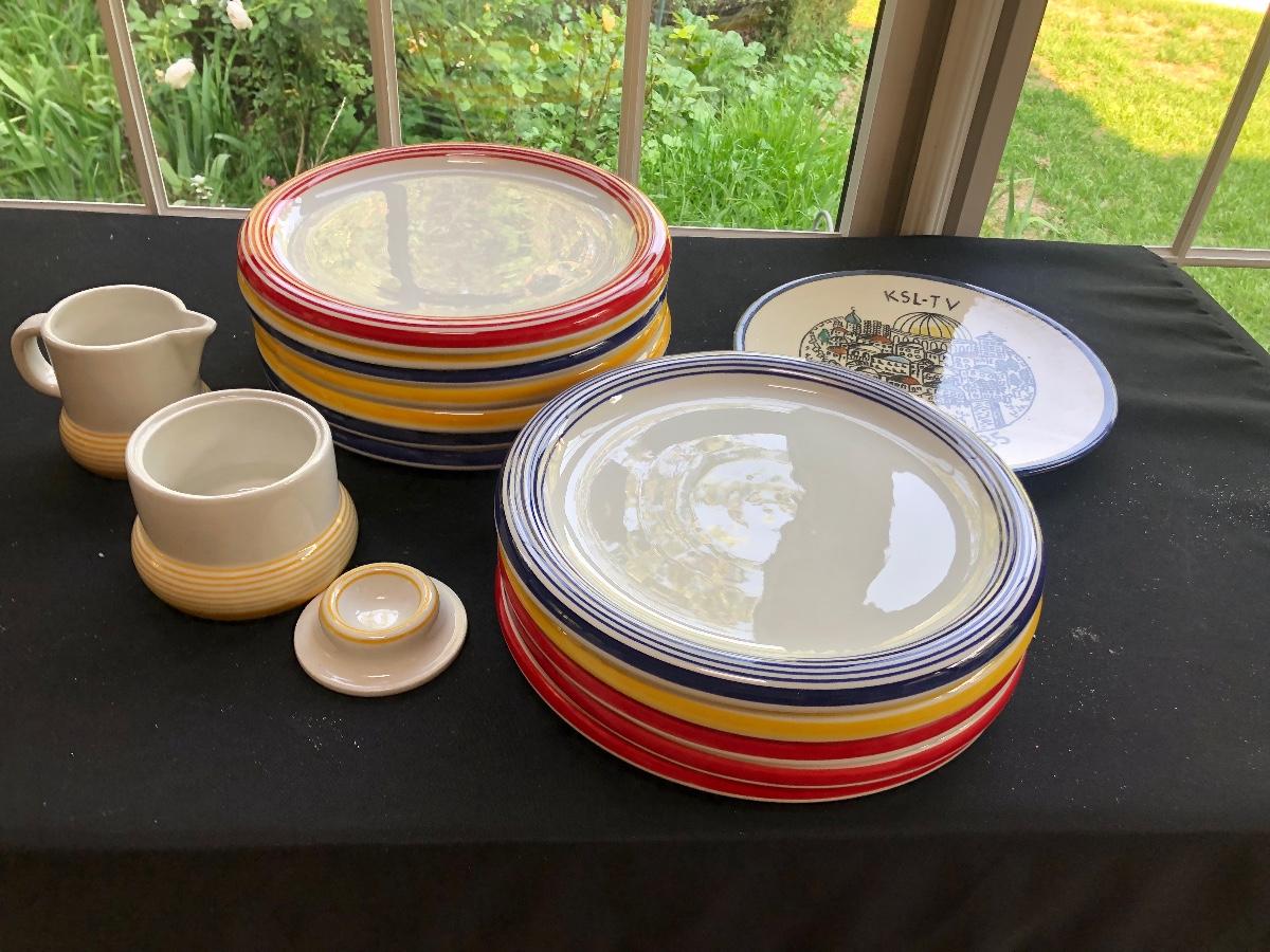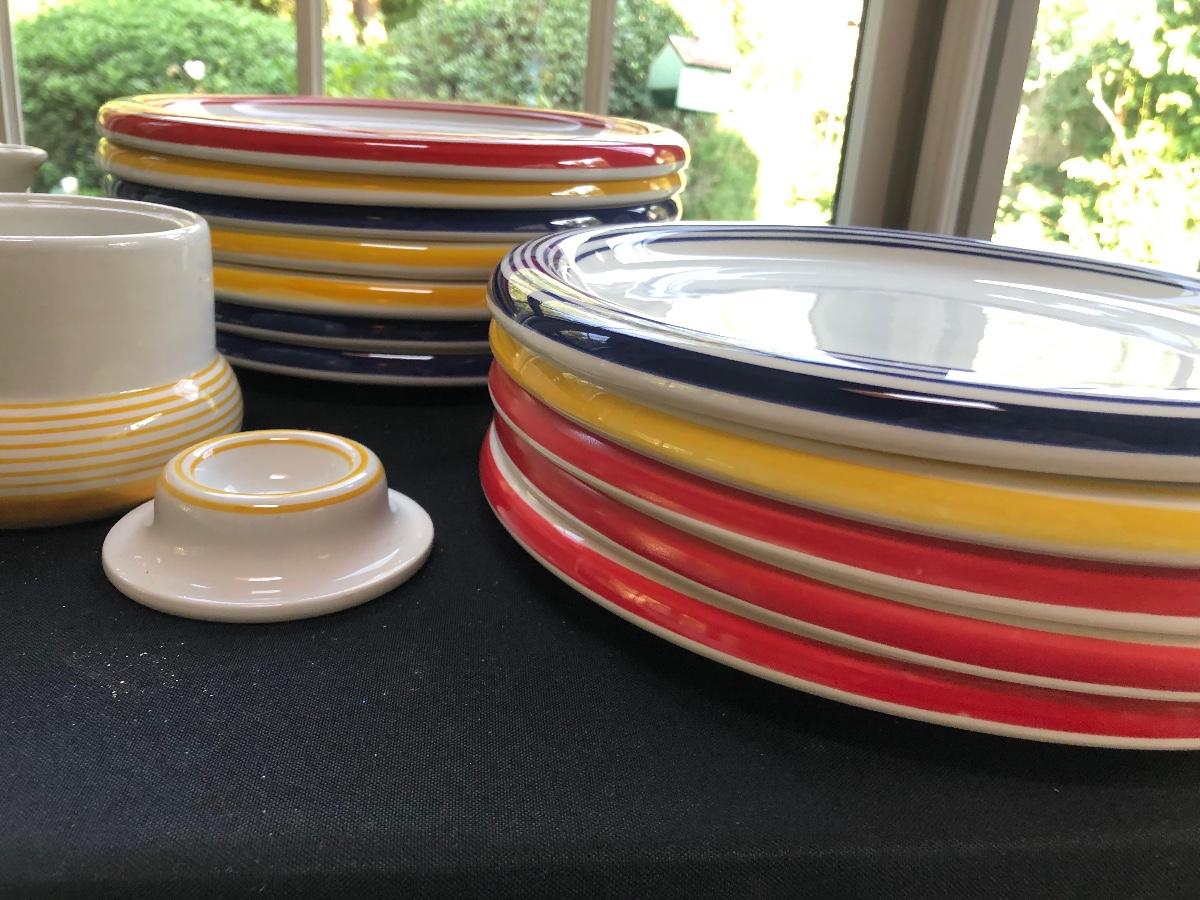 #266 Bundle of brightly colored dishes primarily plates 15 pieces