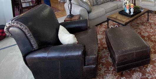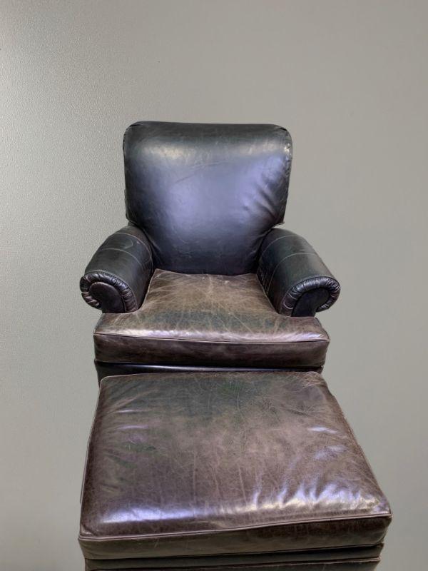 #5 Ethan Allen Leather Sofa Chair & Ottoman