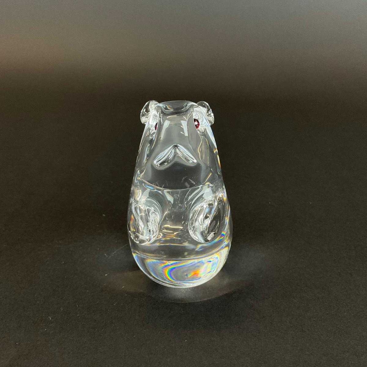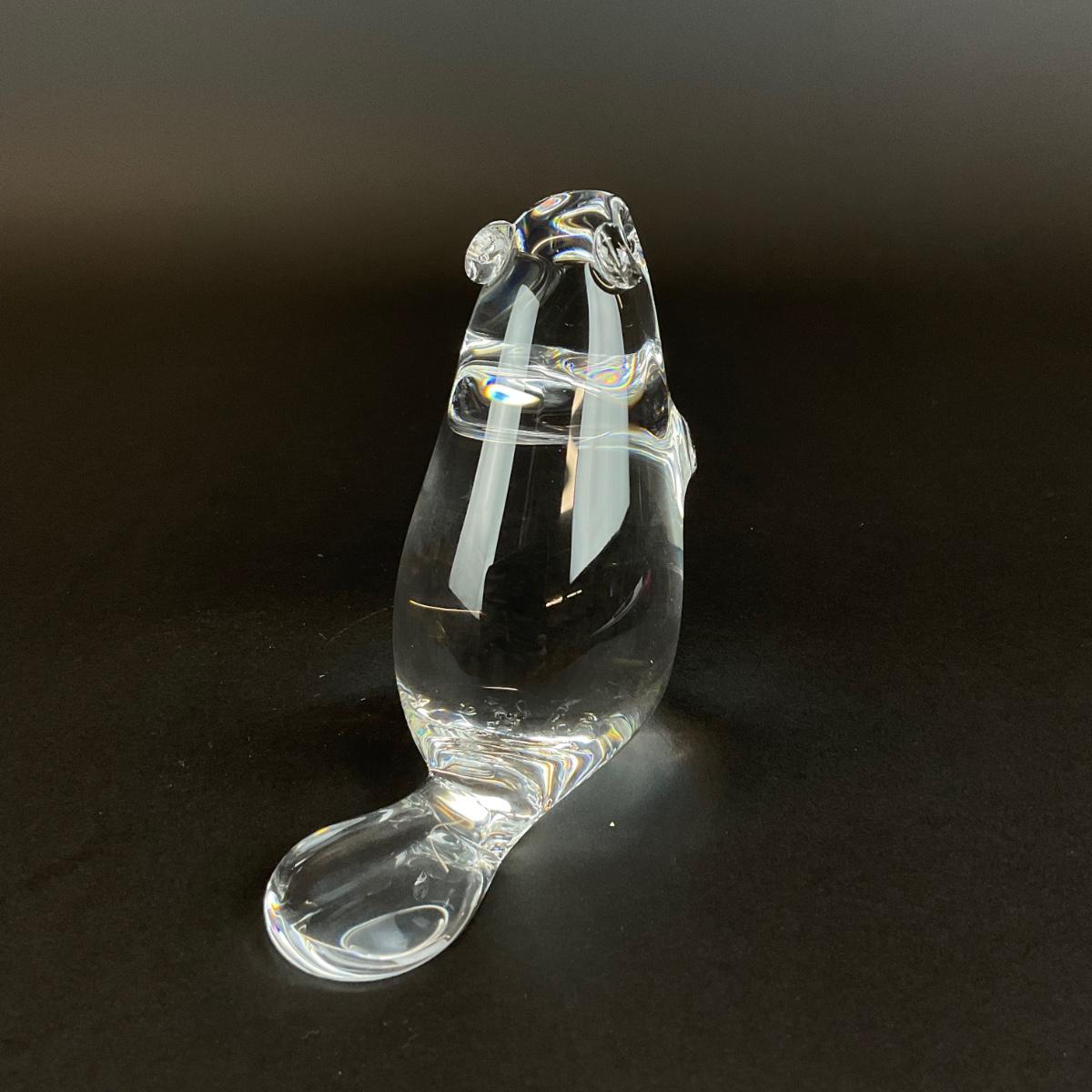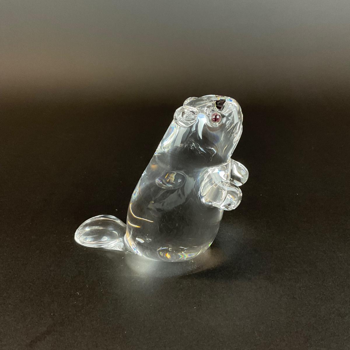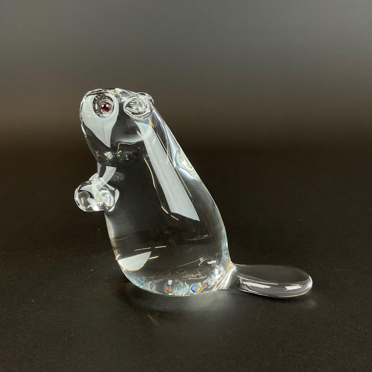 267 Lloyd Atkins 1975 Signed Steuben Beaver with Garnet Eyes Art Glass Sculpture