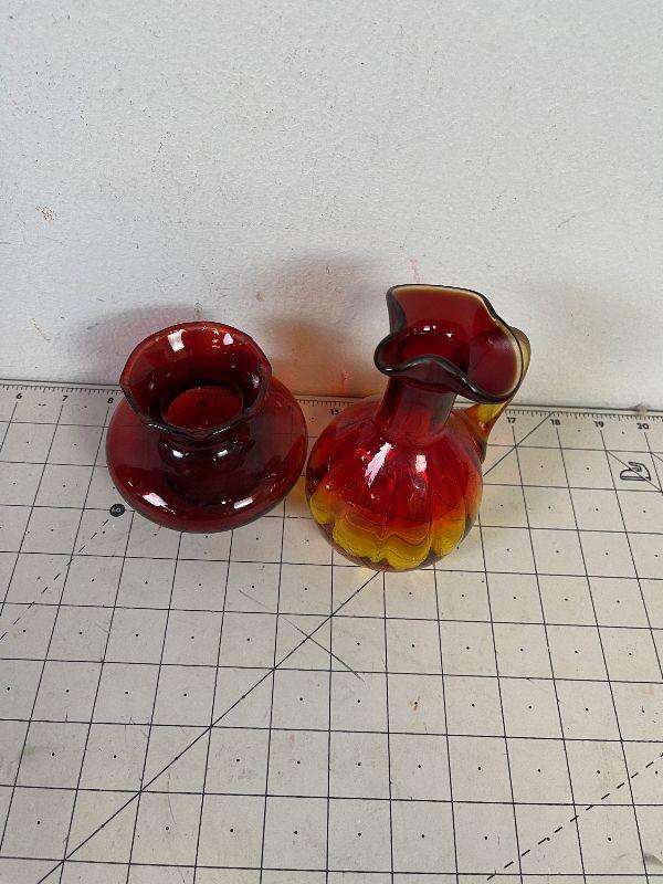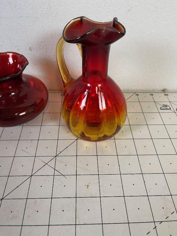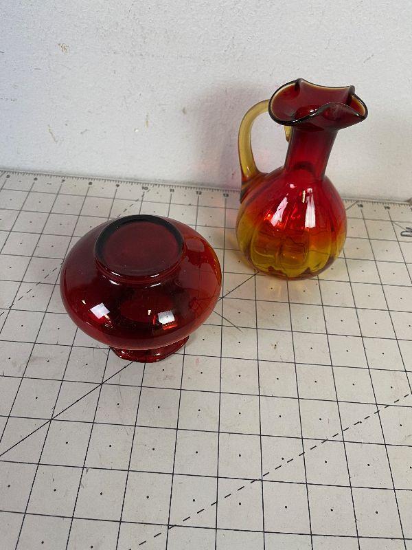 #267 Red Glass Cruet and Vase