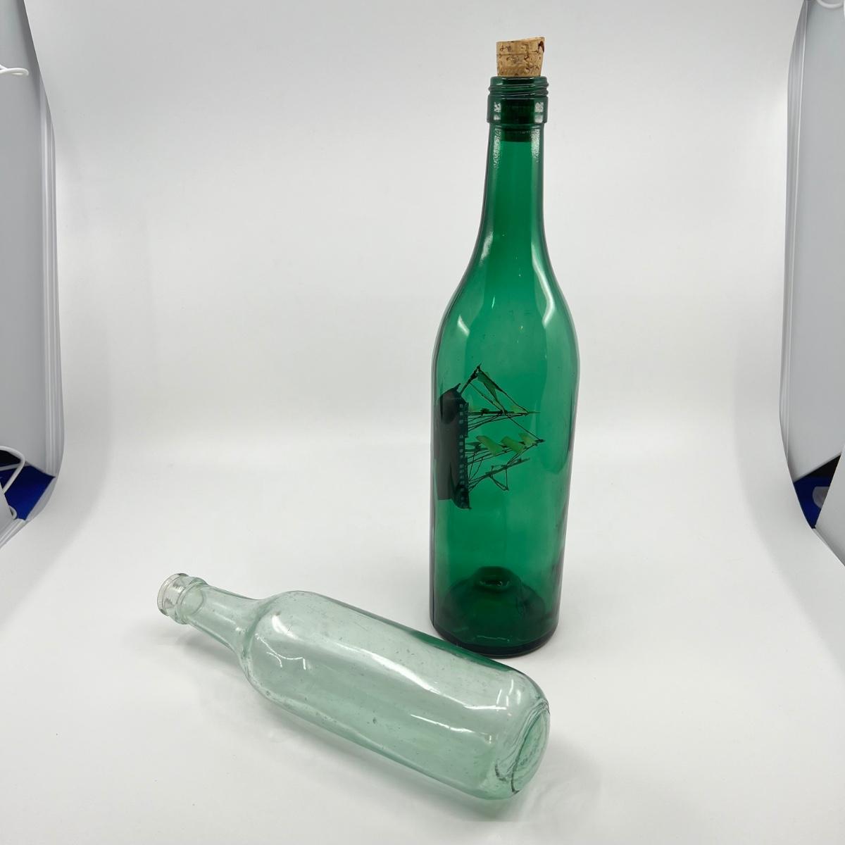13”L Ship in the bottle and 9.5”L Ballast bottle.