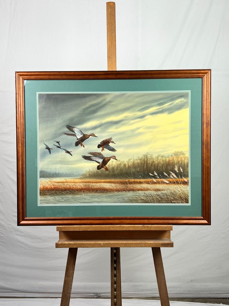 Cherrywood Framed Original Watercolor Waterfowl Scene by William P. Tyner