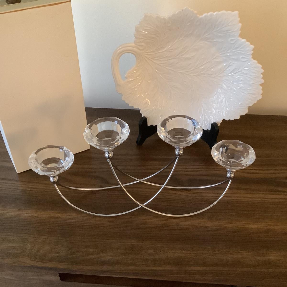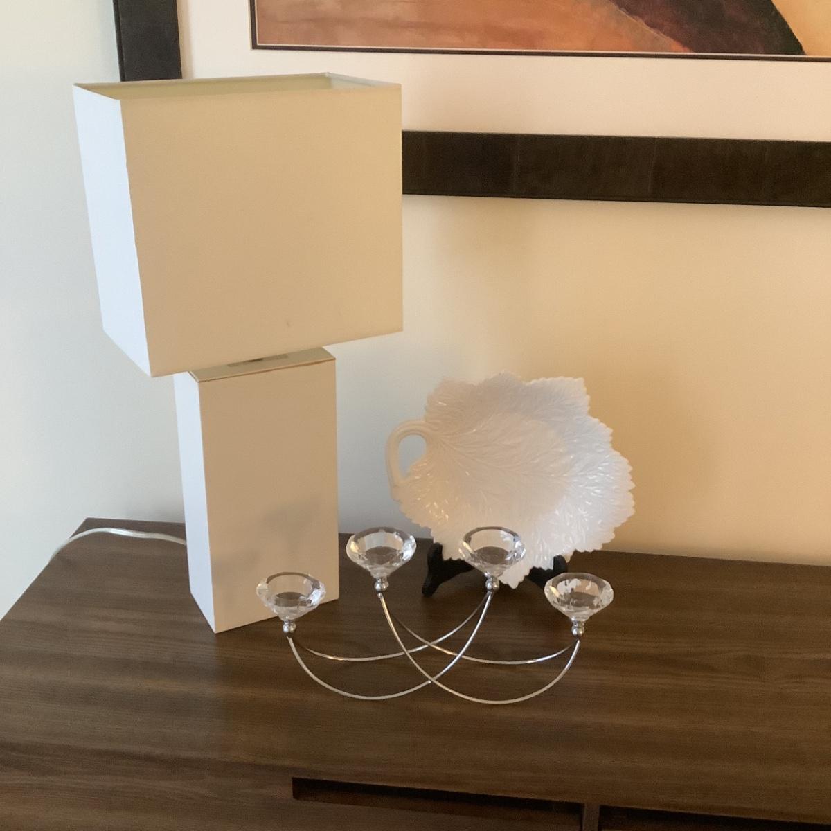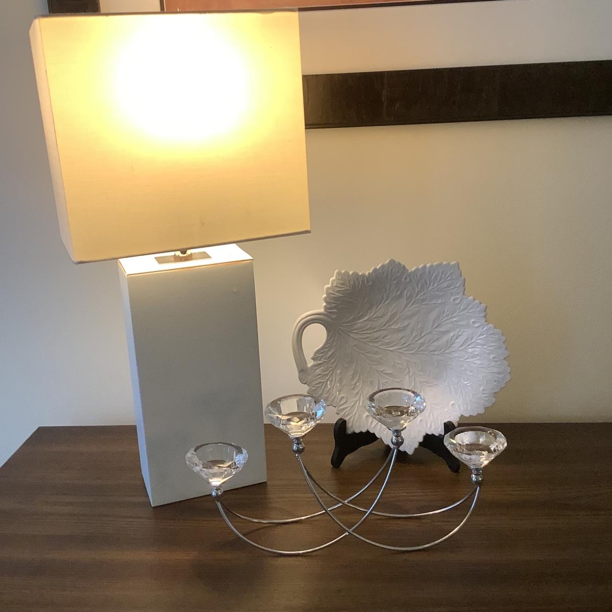 267 White Faux Leather Lamp with Leaf Plate and Candleholder