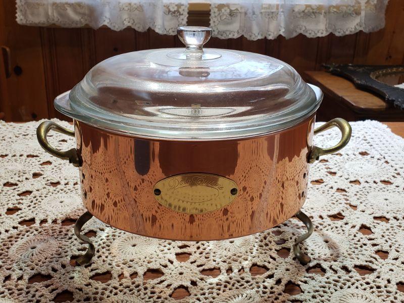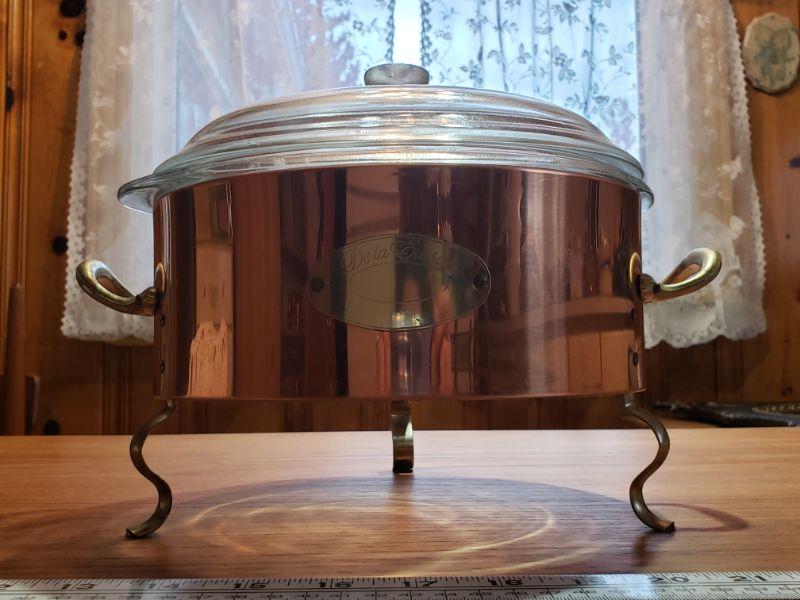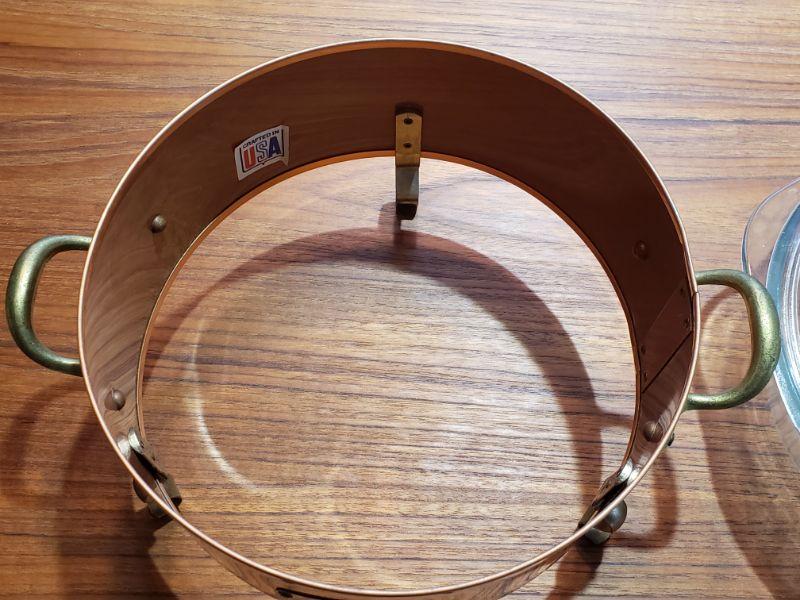 copper cradle with glass covered dish