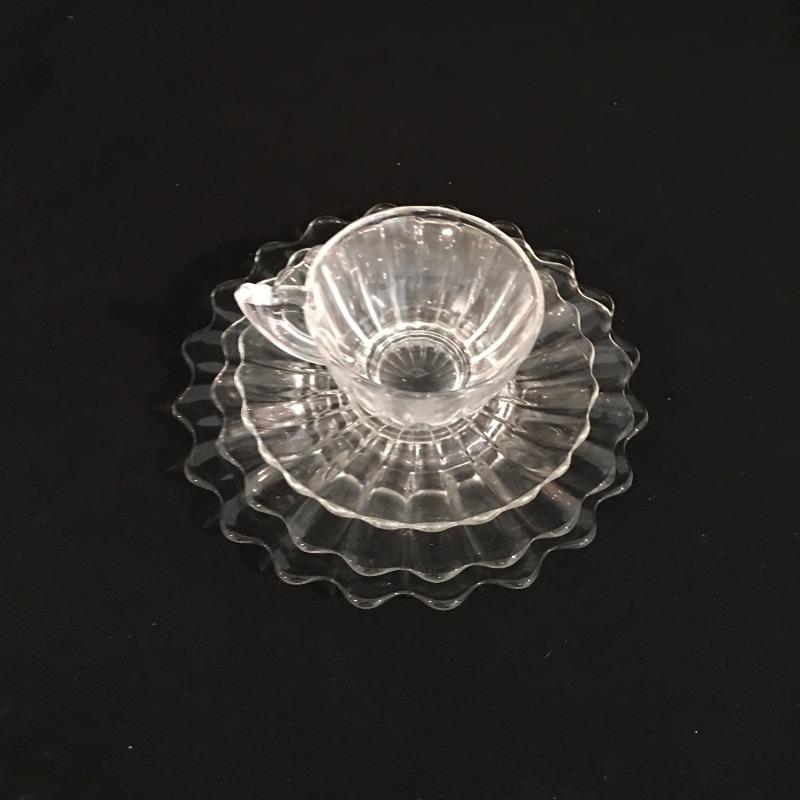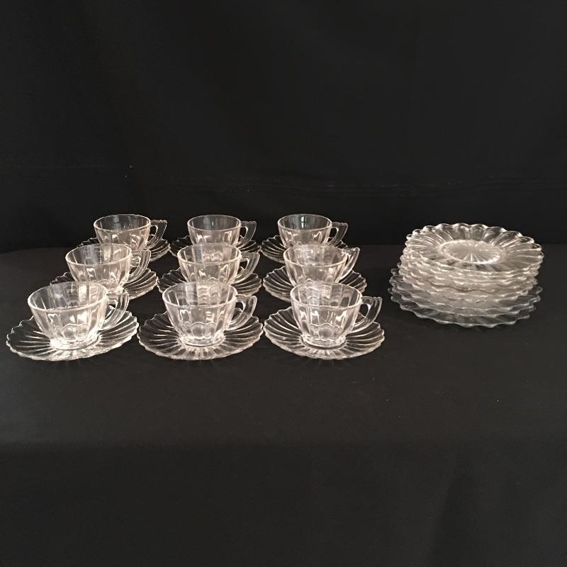 Its desert or tea time with this twenty eight piece glass set. Be ready to host and impress your friends with this dazzling collection. All the items are glass and are in great condition.