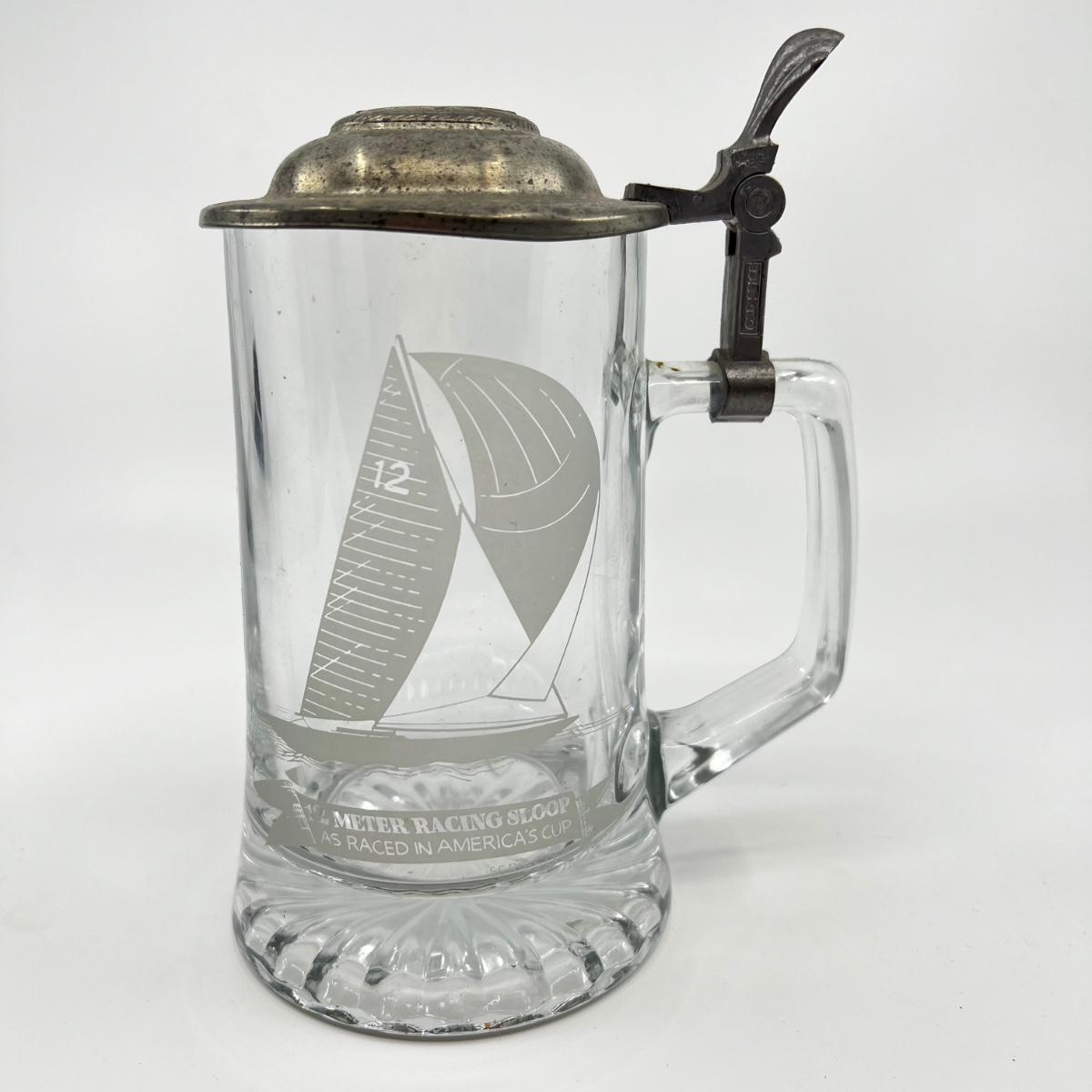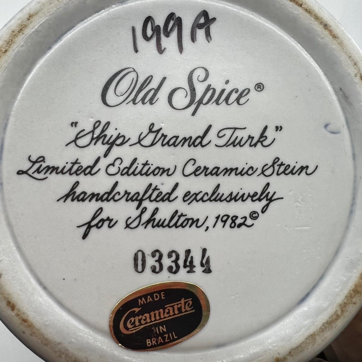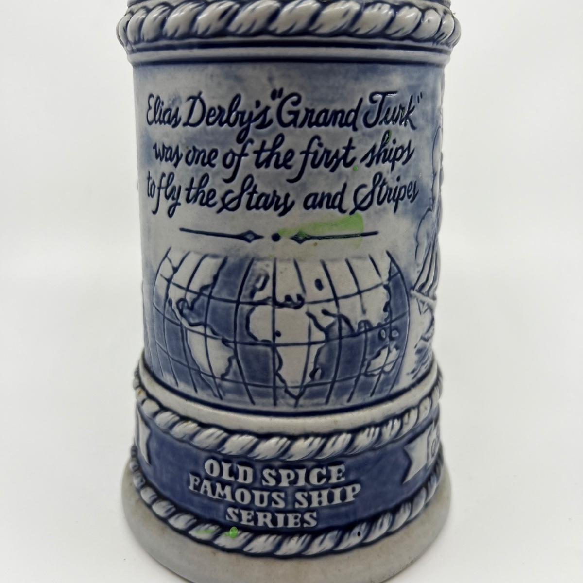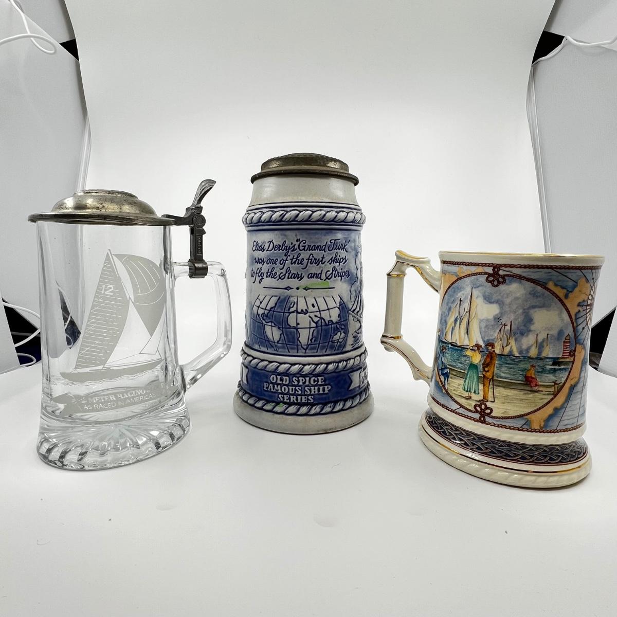 Includes Grand Turk Old Spice Ship ceramic stein; 1982, Americas Cup Series One Old Spice 12m Racing Sloop glass stein, and ceramic tankard mug Nautical by Windsor, England.