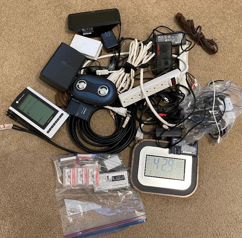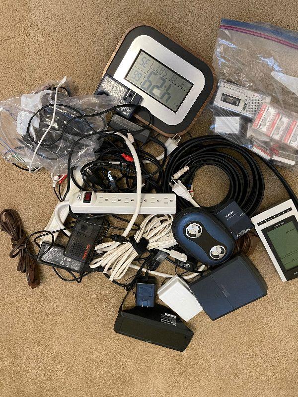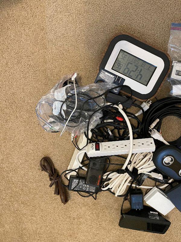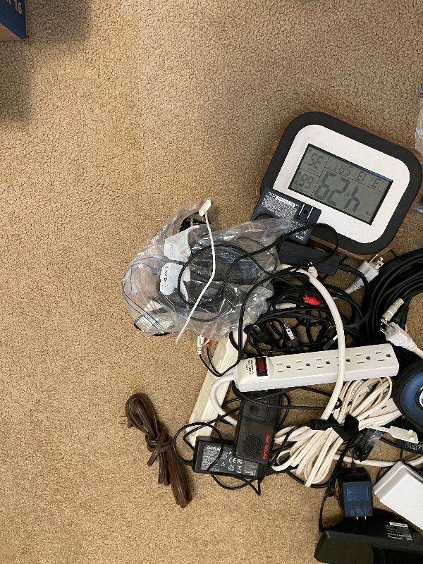 #268 MISC. Electronics; Plugs, speakers, cords etc.