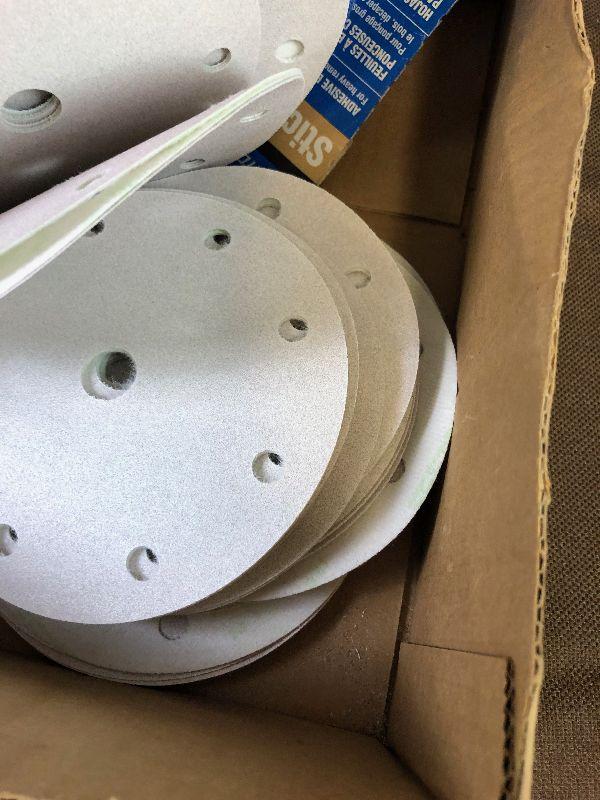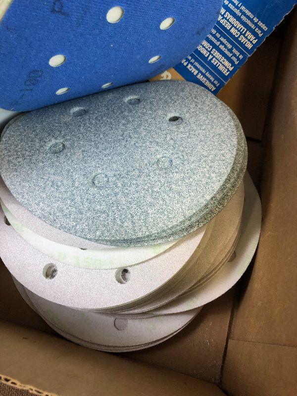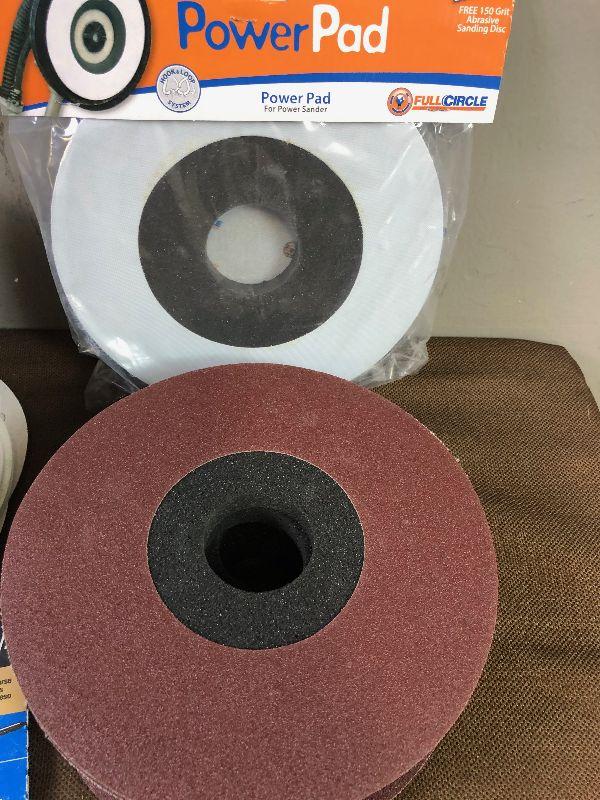 9" power pads, 6" hook and loop. Several grits. Easily $50 worth of sandpaper.