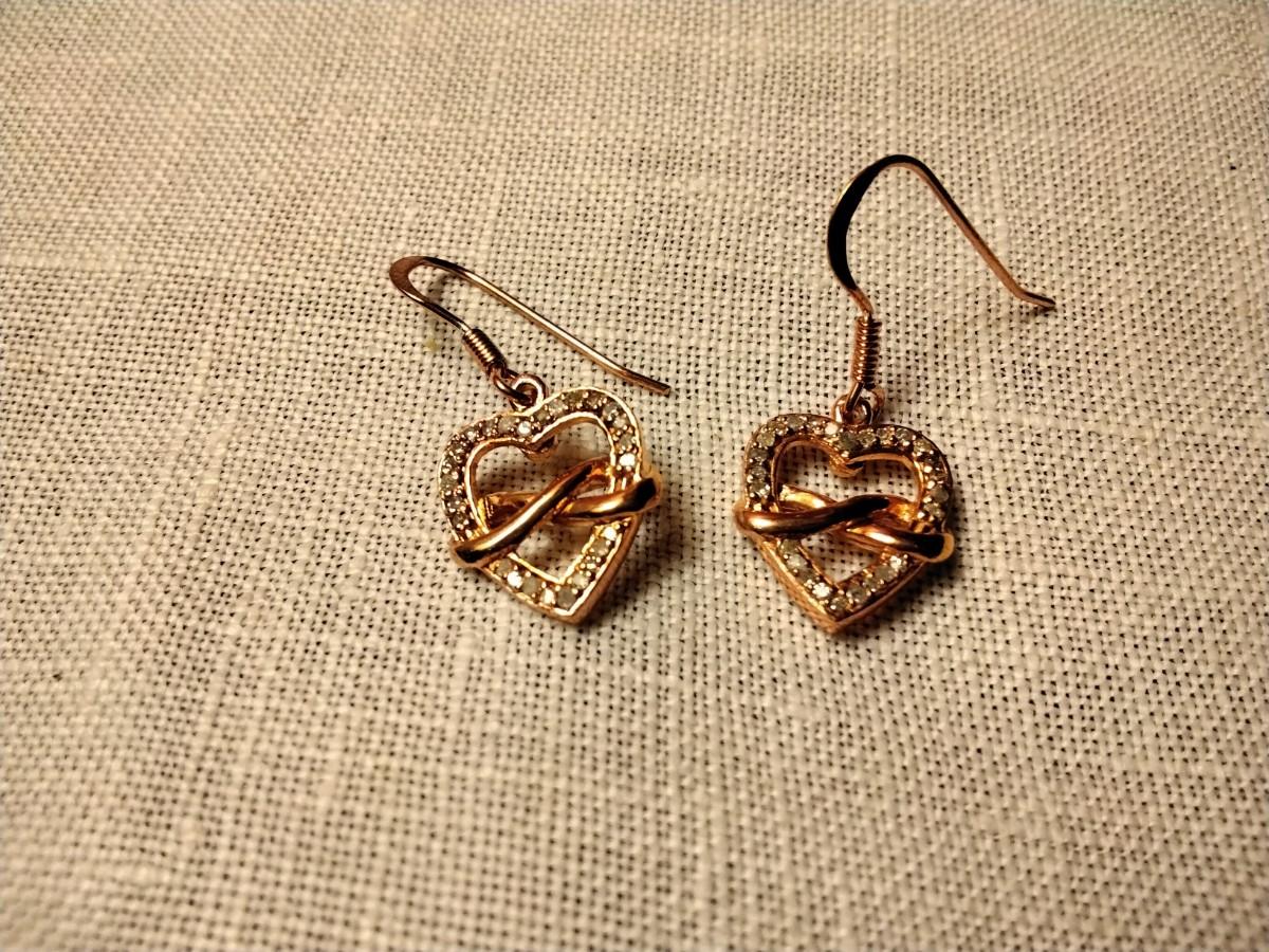 .26ctw H-SI Diamond 14K Rose Gold 925 Silver Heart Dangle Earrings