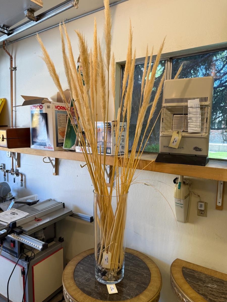Nice 26”t Glass Vase w/bunch of dried wheat grass