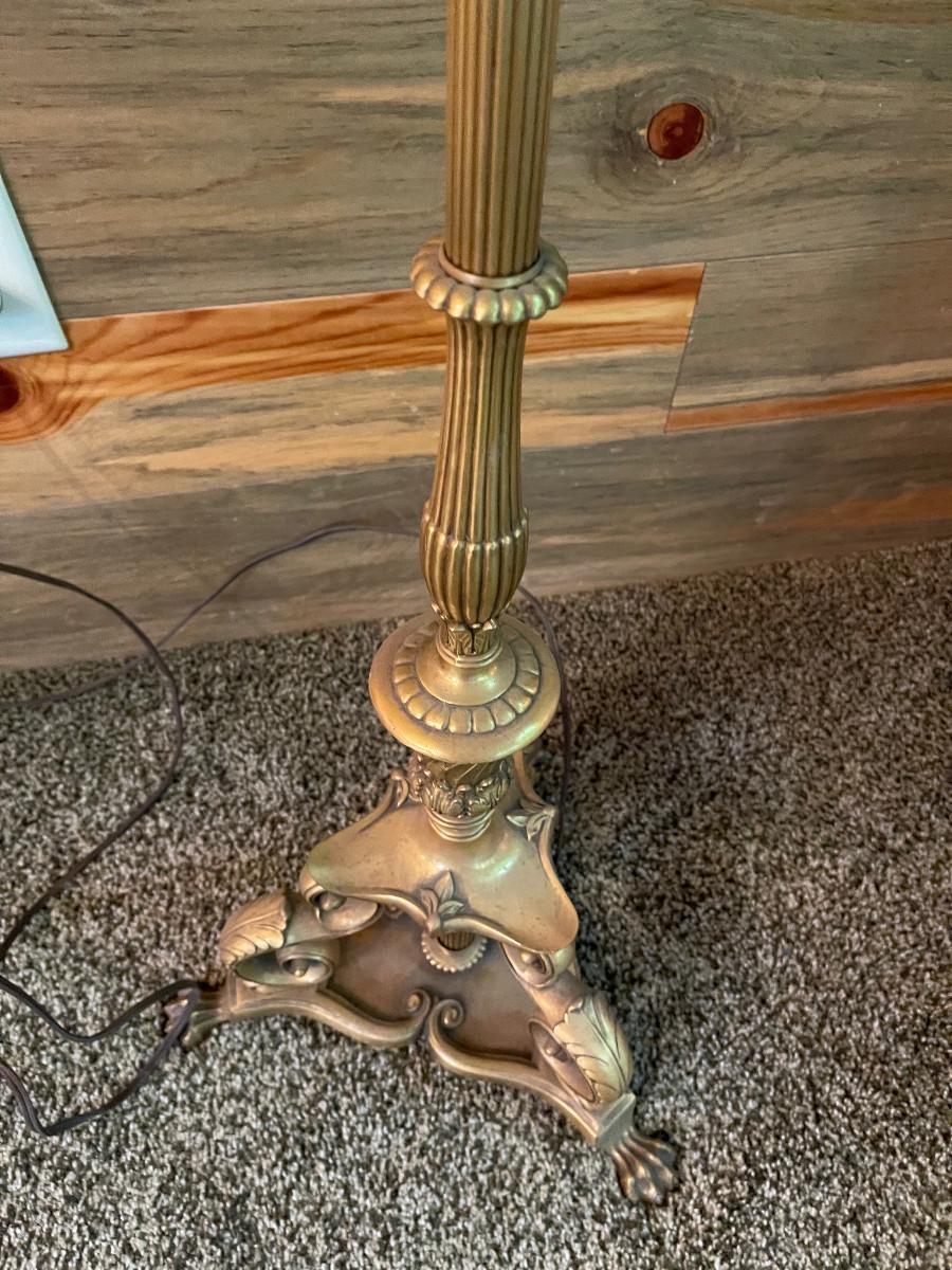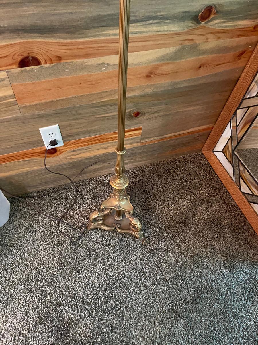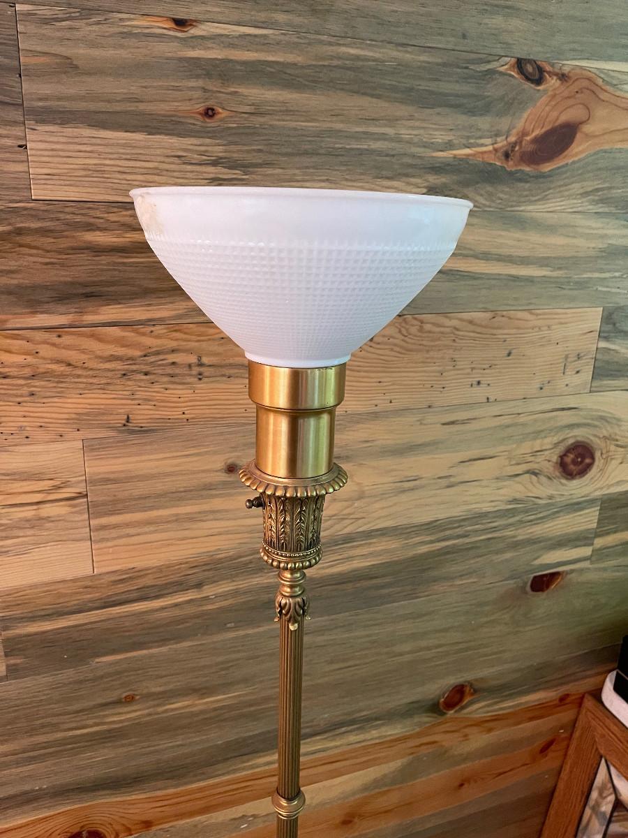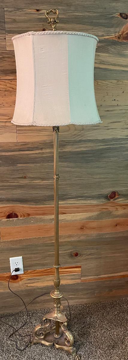 Good Condition with Shade. 61" Tall Needs a new Light Bulb. Should be in working order. The Finial needs a nut.