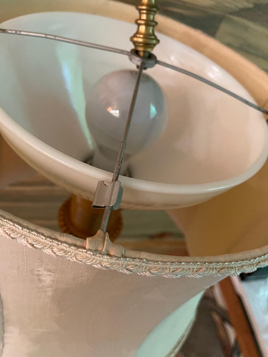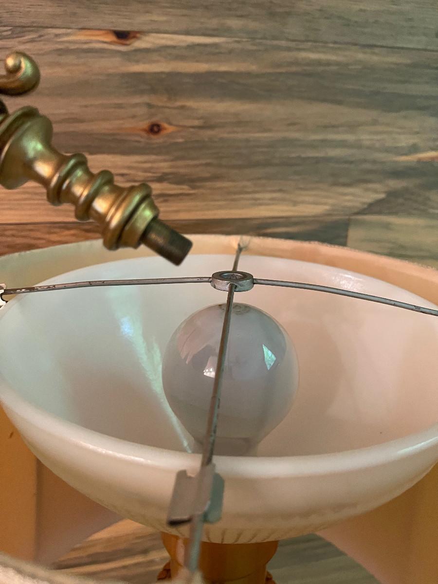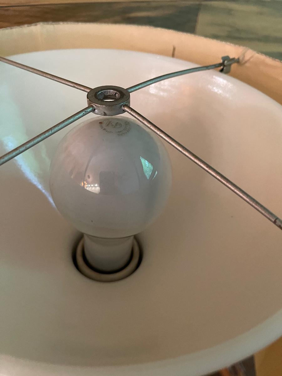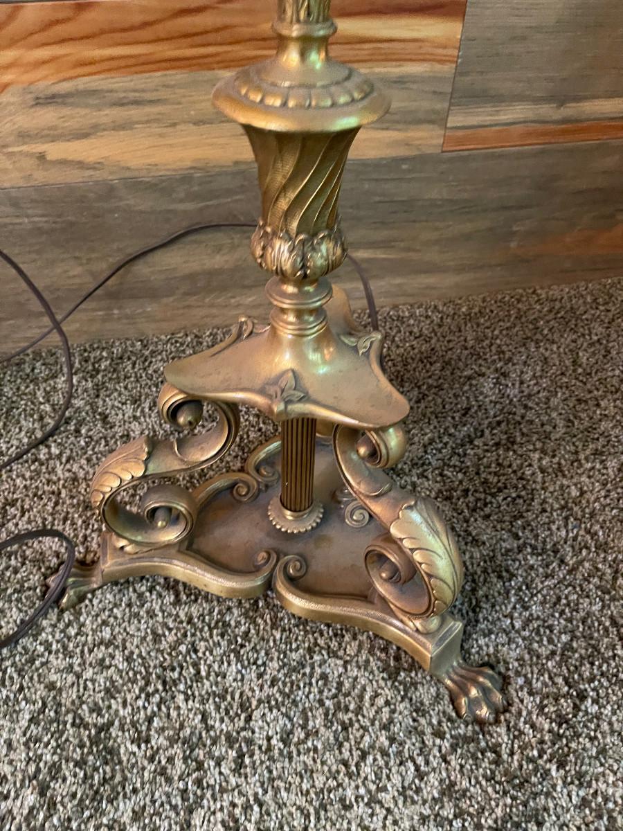 Good Condition with Shade. 61" Tall Needs a new Light Bulb. Should be in working order. The Finial needs a nut.