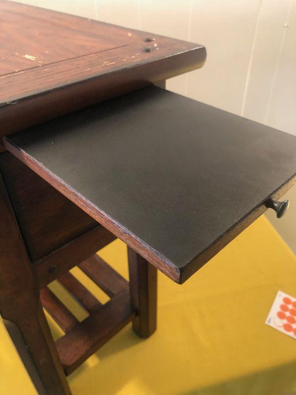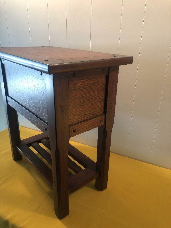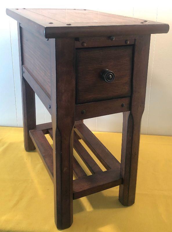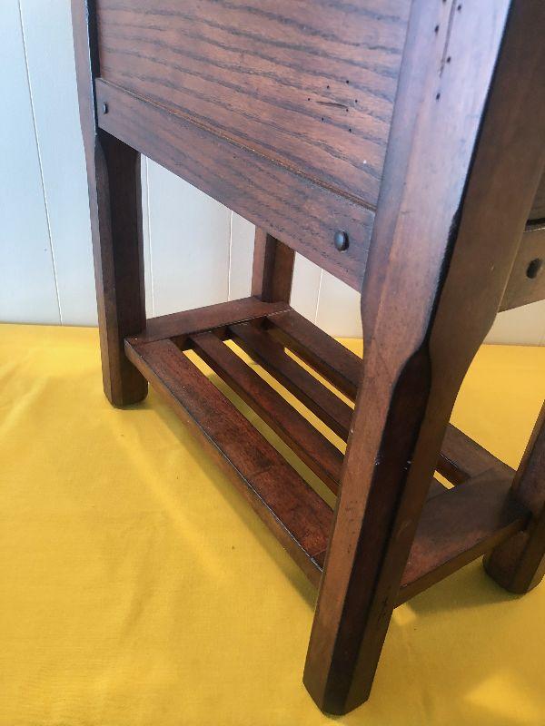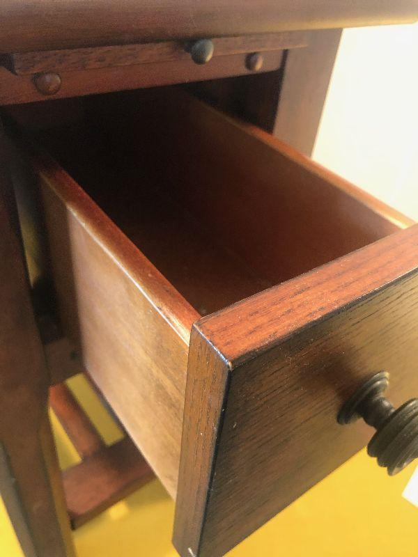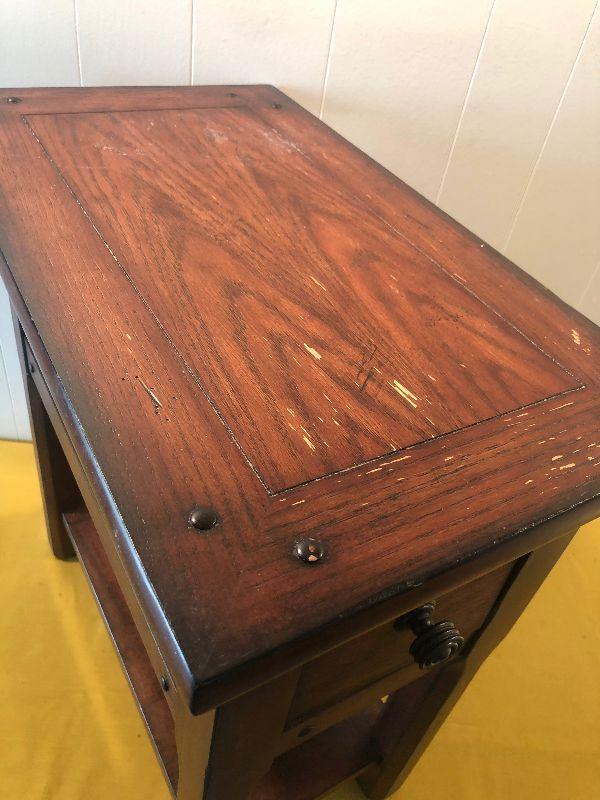 With Drawer and Tray 24 x 13 x 23 Stained a reddish tone.