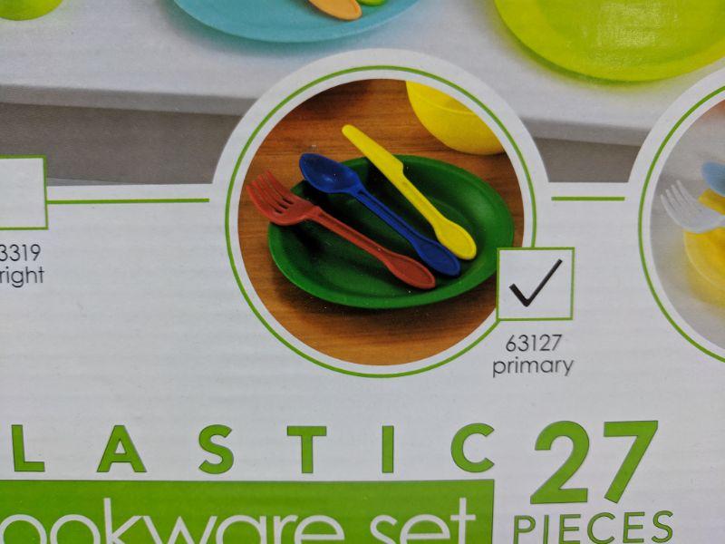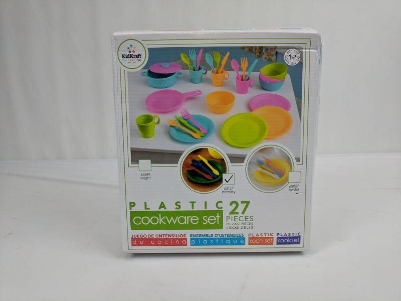 27 pcs Plastic Cookware Set, Primary Colors, KidKraft, Box Damaged - New