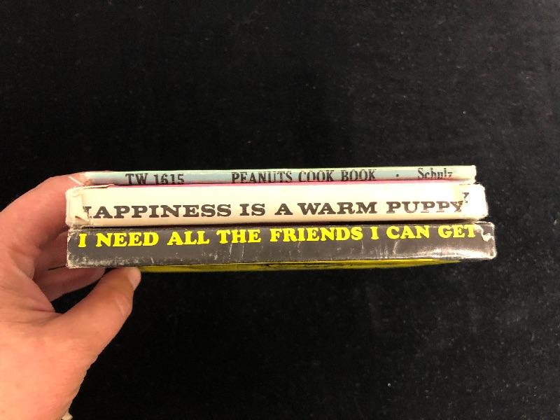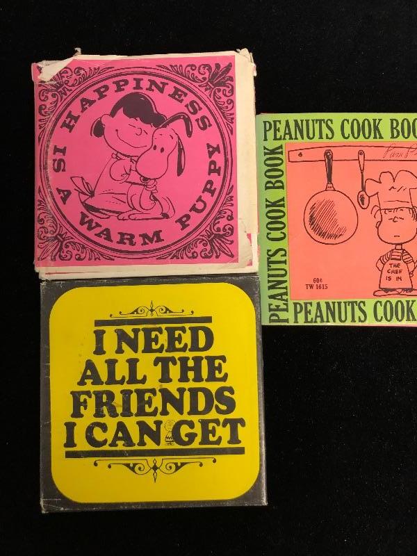 Vintage used condition includes, I need all the Friends I can get, Happiness is a warm puppy, and Peanuts cookbook.