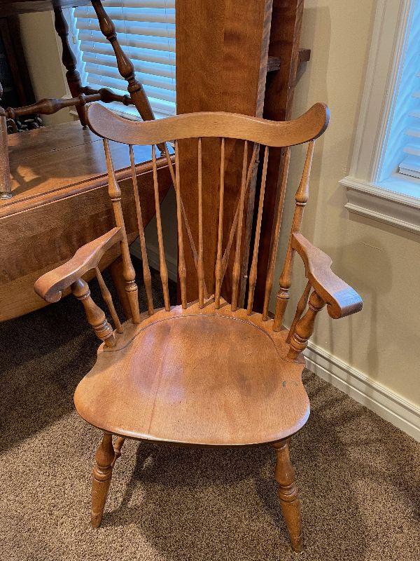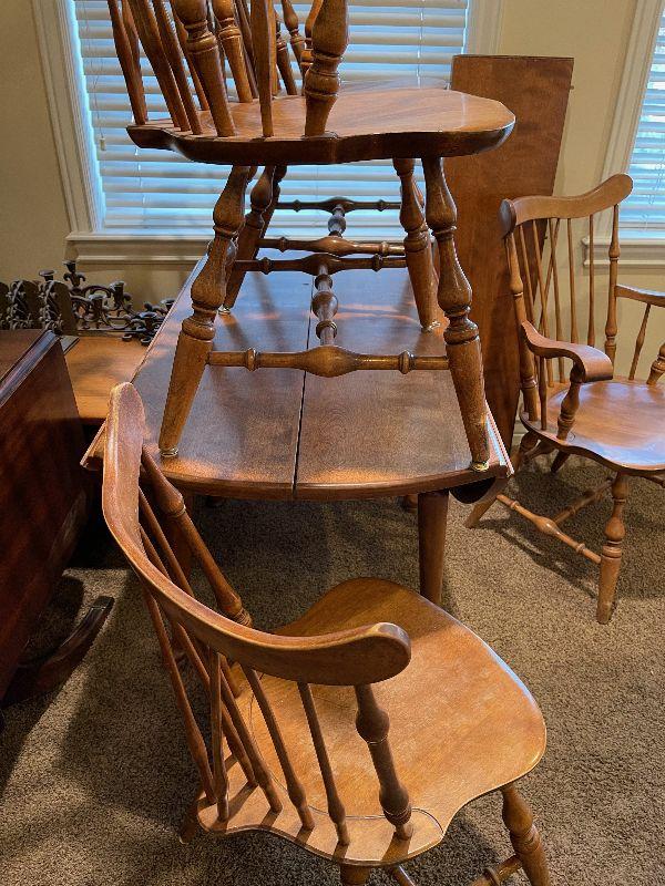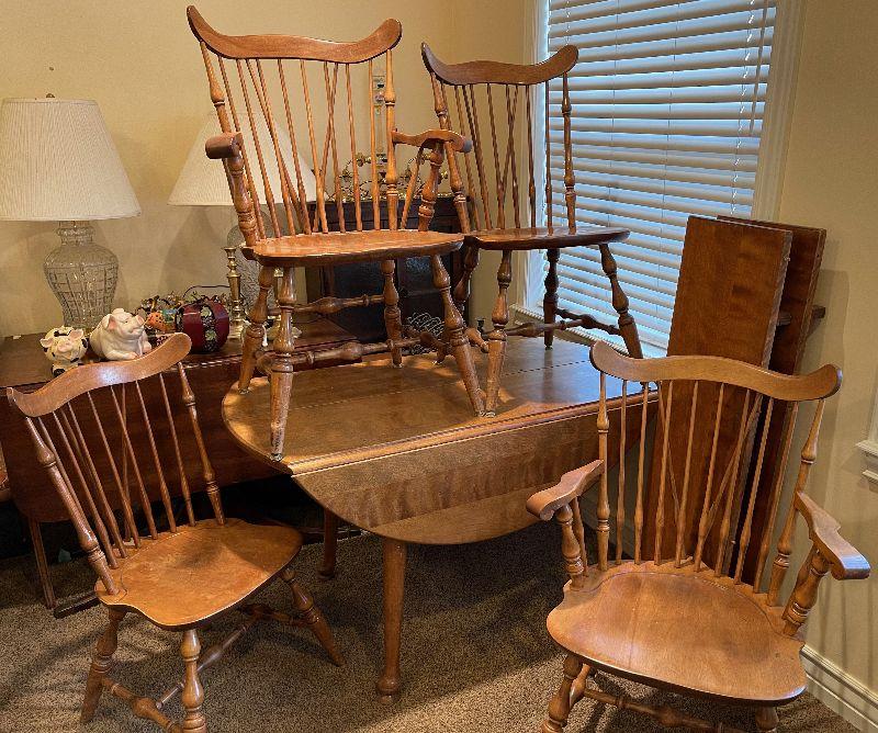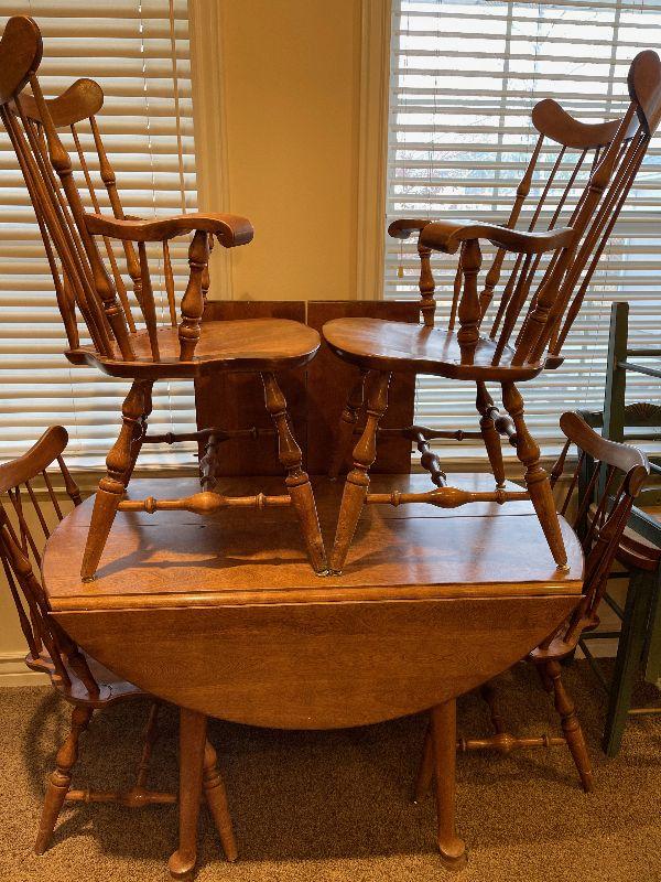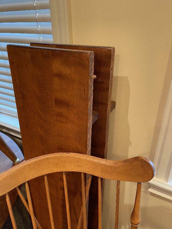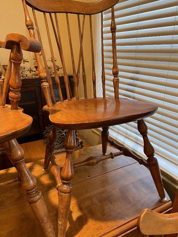 #27 Vintage Hardrock Maple Colonial Windsor style Table, Leaf and 4 Chairs