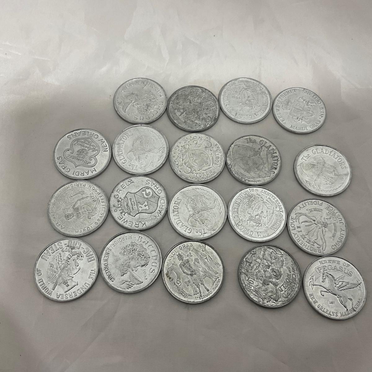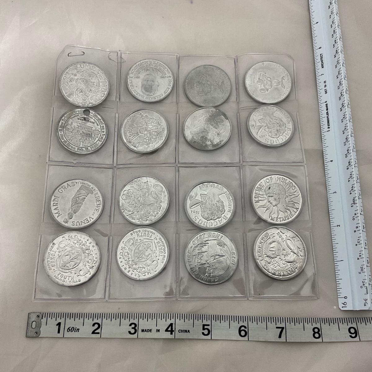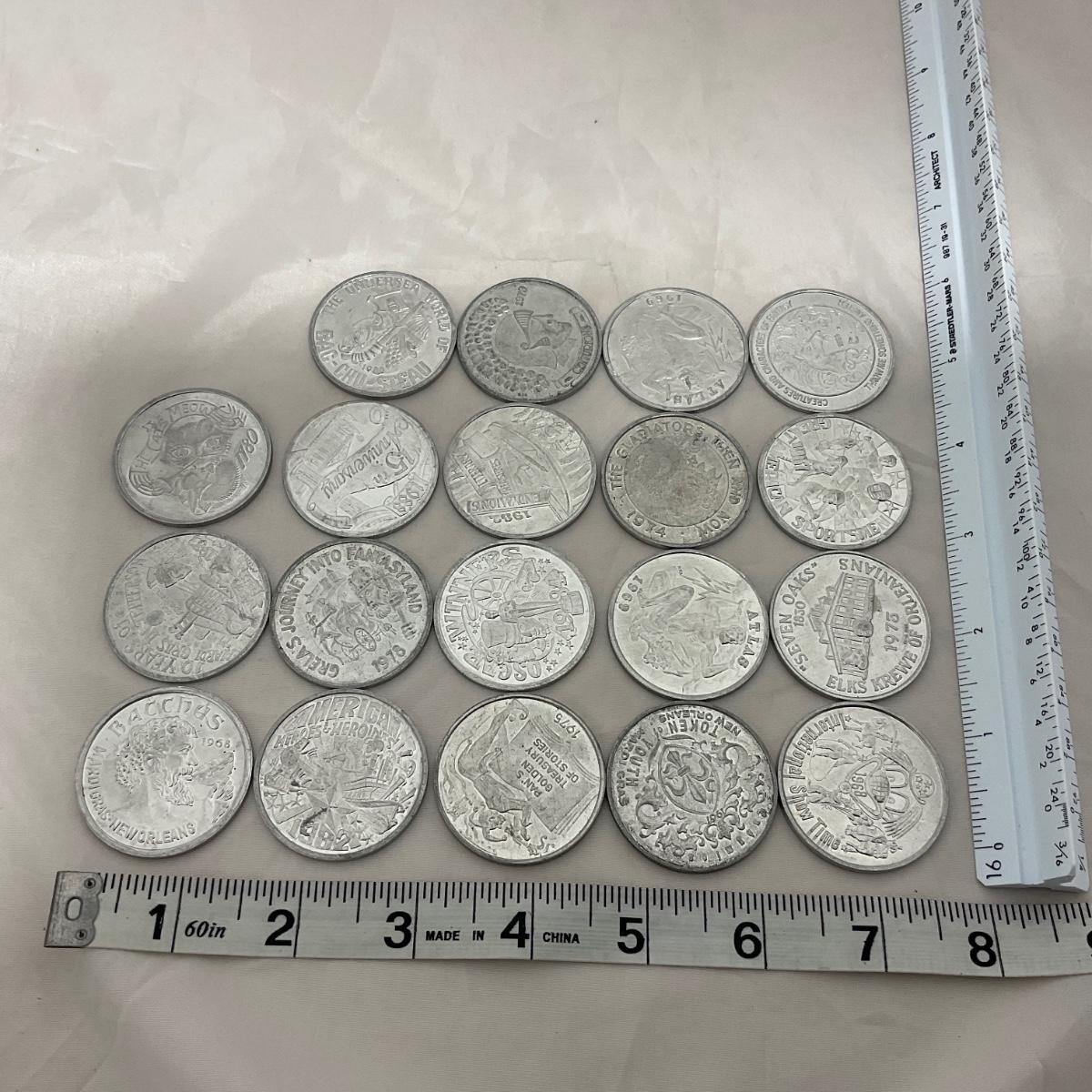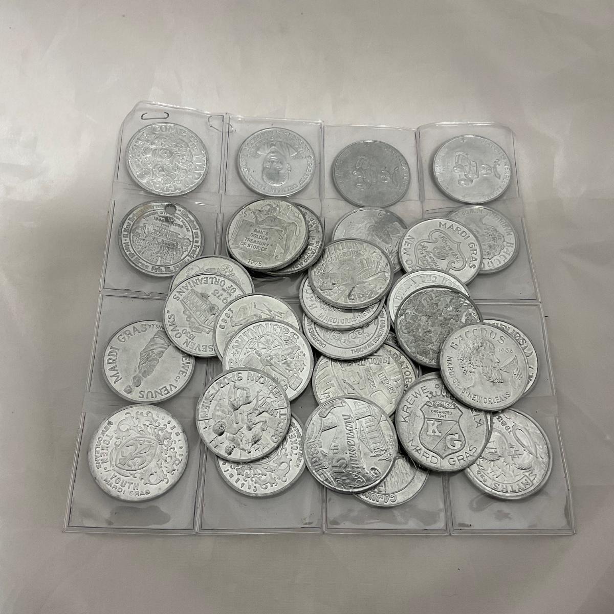 35 vintage Mardi Gras tokens. Please see photos for details and condition. ::: Shipping is available on this lot. If you require shipping you must let us know at the close of the auction. We will coordinate with you after the item has been won. Shipping fees will include insurance up to or exceeding the value of all items being mailed. If you have any questions regarding this lot please contact the auctioneer either via this website, by direct email or by phone. PICK UP TIMES and other important information can be found in the TERMS and DESCRIPTION of the auction. Please take a look for pertinent information. Thanks!