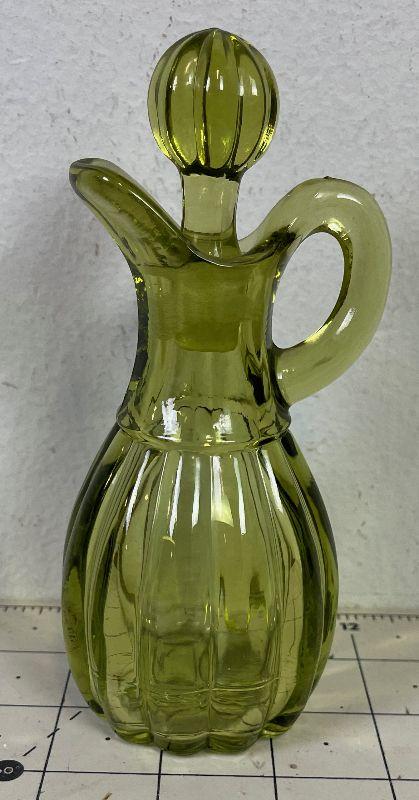 #270 Green Glass Cruet W/ Stopper
