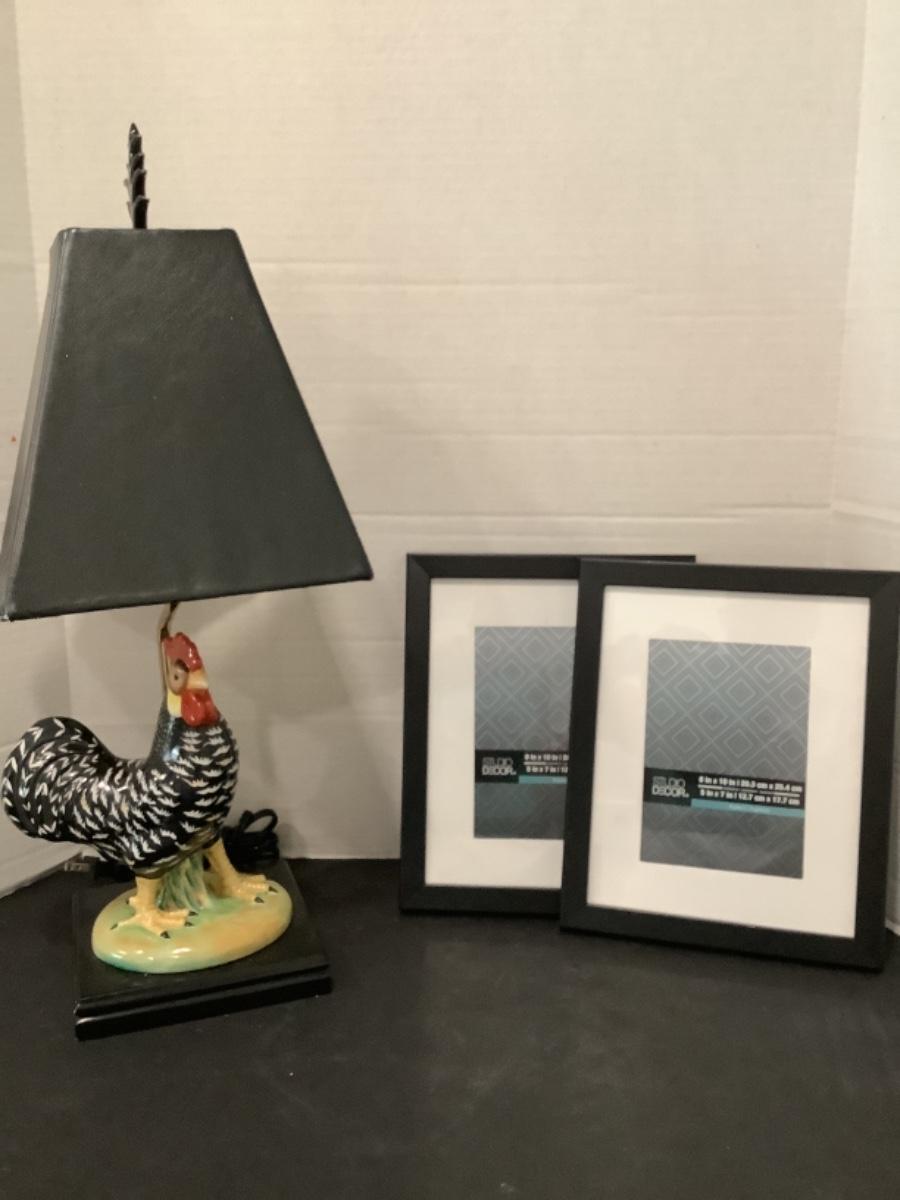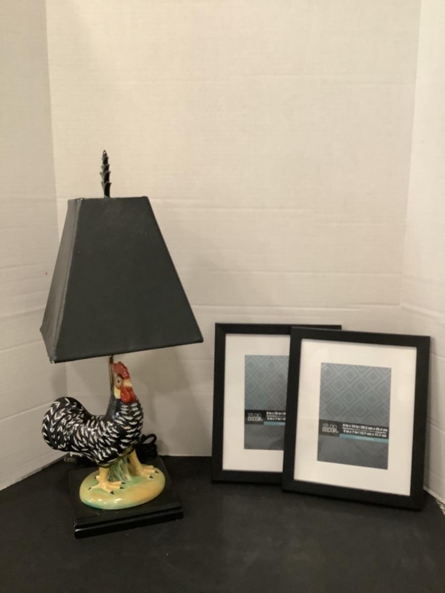 270. Porcelain Chicken Lamp & Two NEW Picture Frames