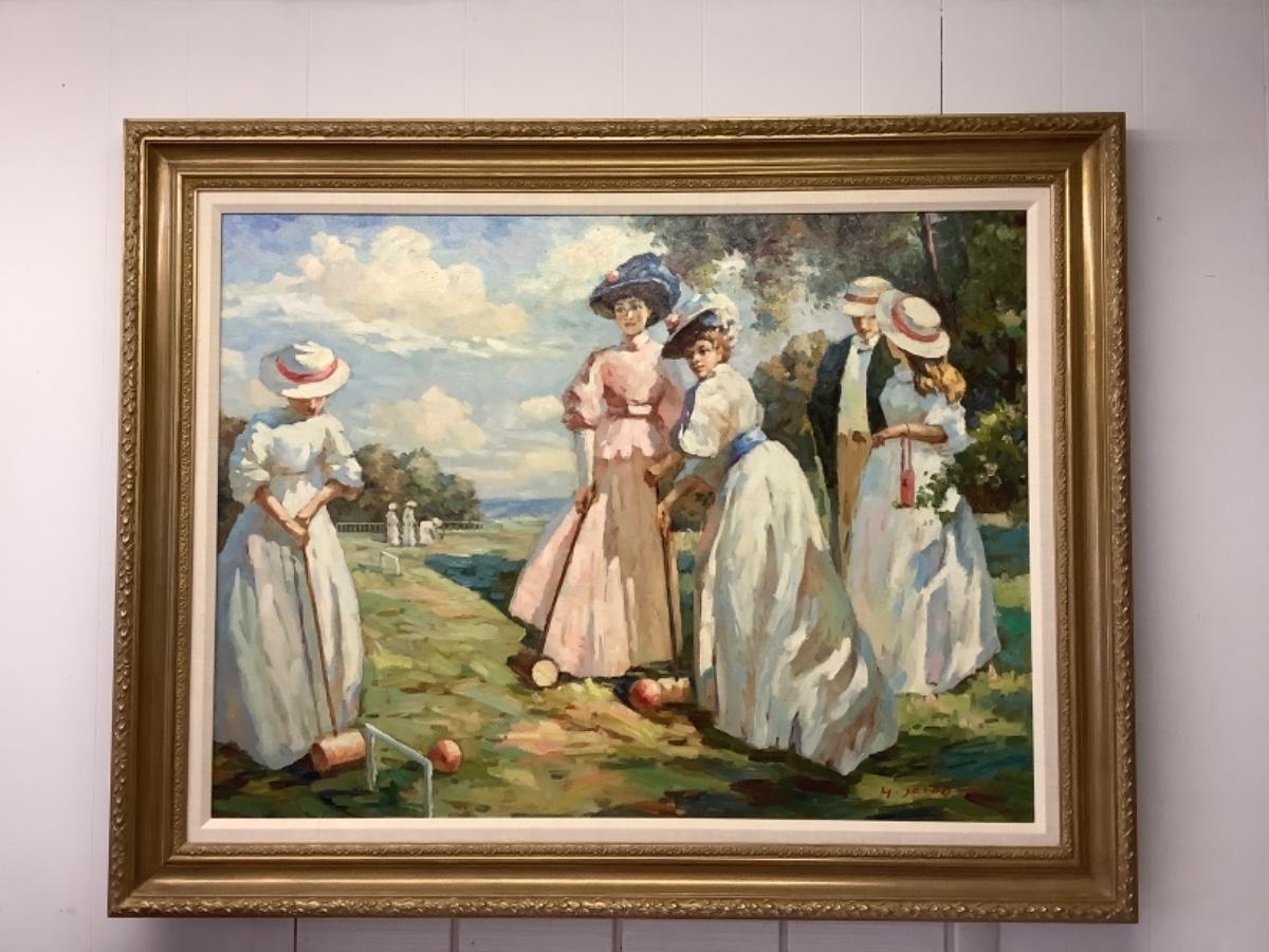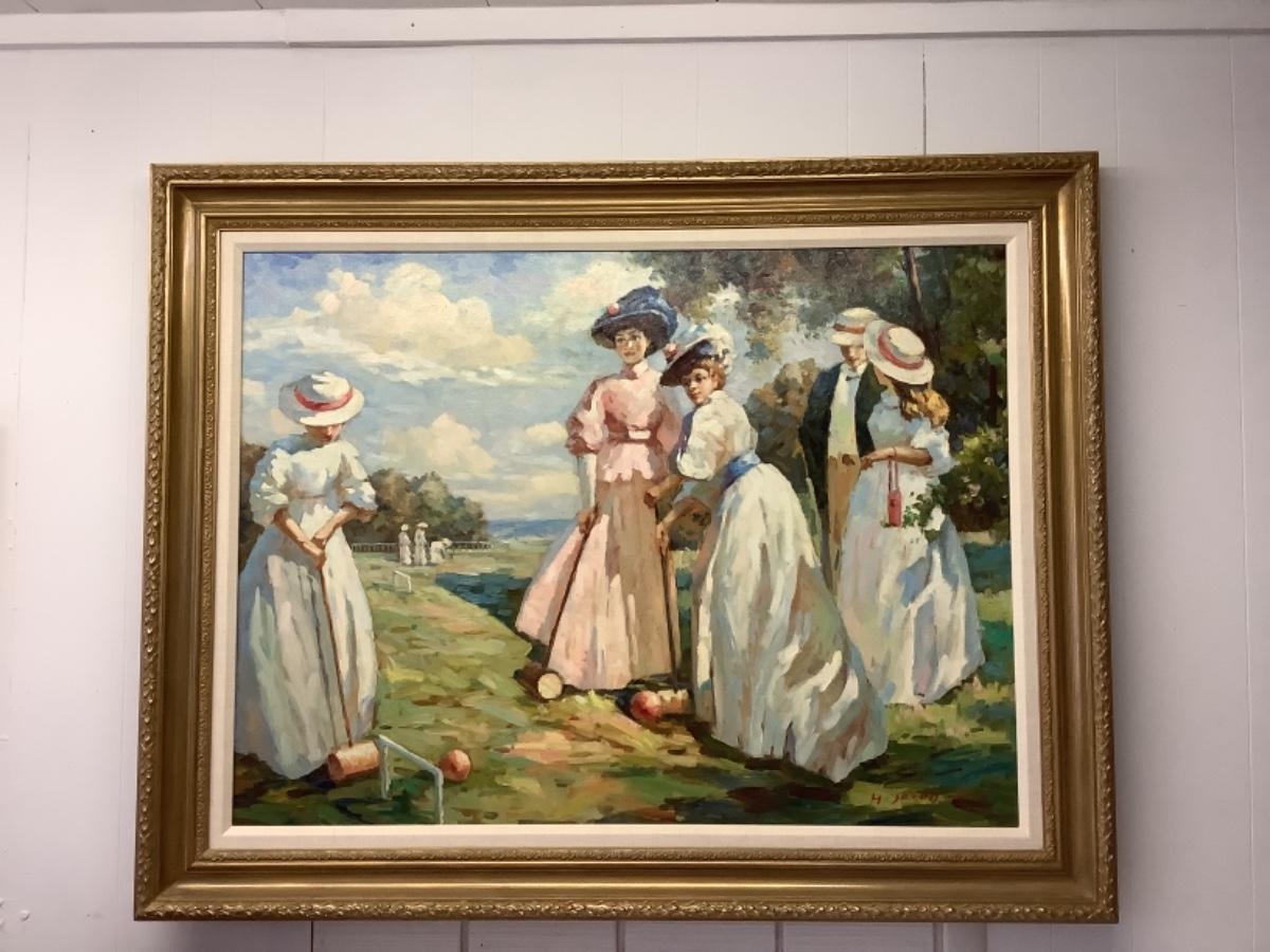 Signed Oil Painting “ A Game of Croquet “ by H. Jacob