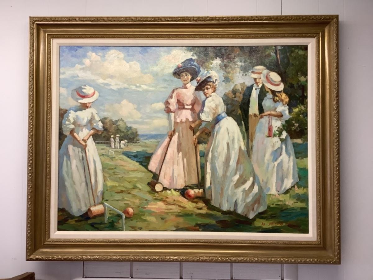 270. Signed Oil Painting “ A Game of Croquet “ by H. Jacob