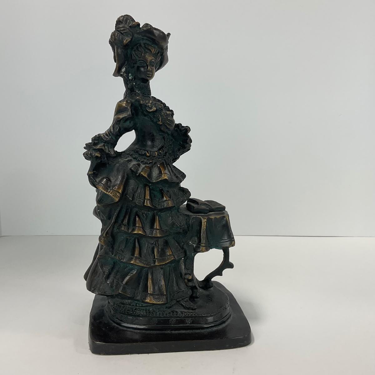 One vintage Metal Victorian style statue. This piece is heavy and 11 inches tall. Please see photos for details and condition. ::: Shipping is available on this lot. If you require shipping you must let us know at the close of the auction. We will coordinate with you after the item has been won. Shipping fees will include insurance up to or exceeding the value of all items being mailed. If you have any questions regarding this lot please contact the auctioneer either via this website, by direct email or by phone. PICK UP TIMES and other important information can be found in the TERMS and DESCRIPTION of the auction. Please take a look for pertinent information. Thanks!