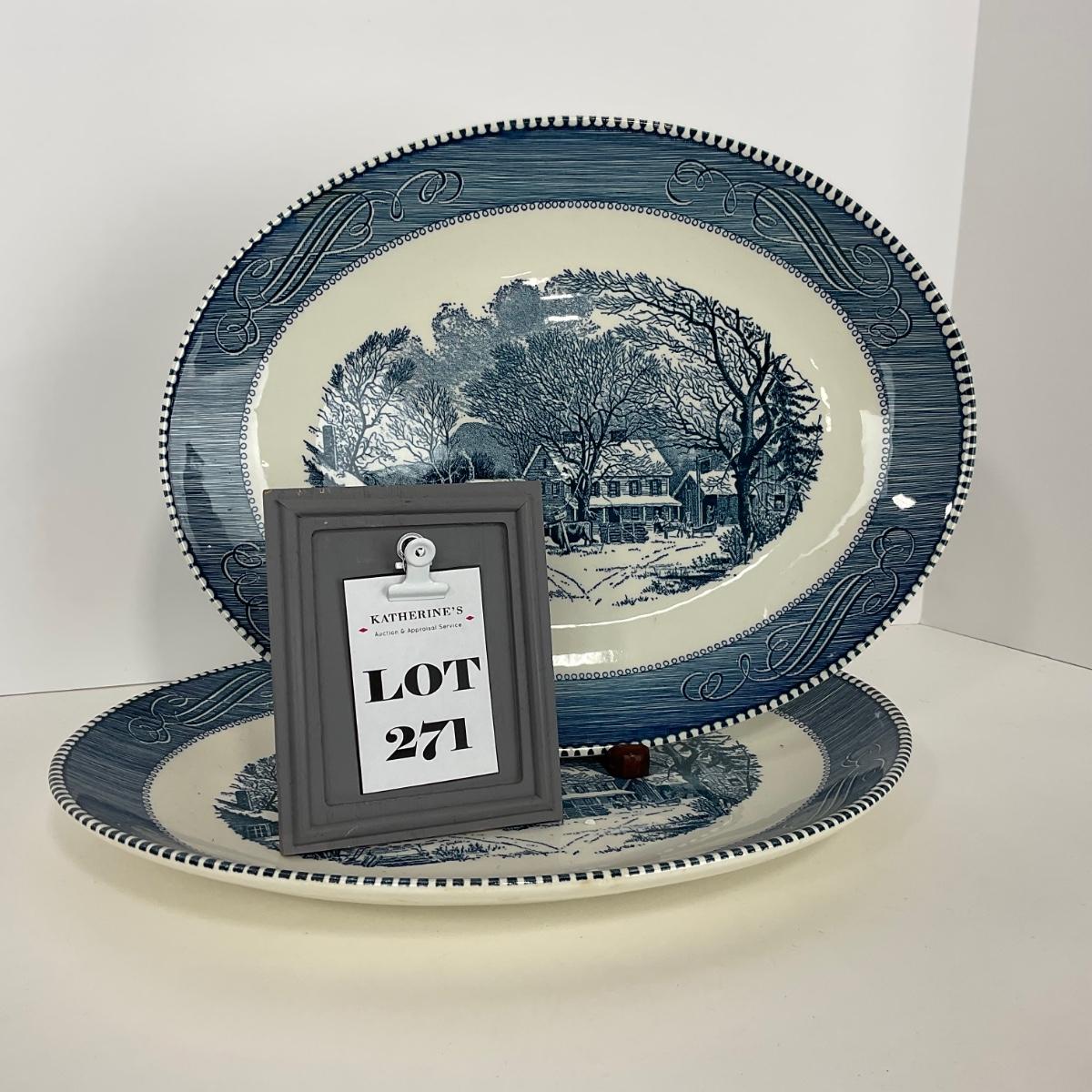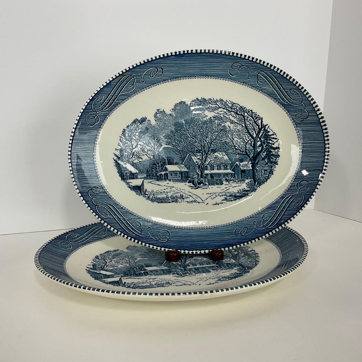 Two Currier and Ives long large platters. Please see photos for details and condition. ::: Shipping is available on this lot. If you require shipping you must let us know at the close of the auction. We will coordinate with you after the item has been won. Shipping fees will include insurance up to or exceeding the value of all items being mailed. If you have any questions regarding this lot please contact the auctioneer either via this website, by direct email or by phone. PICK UP TIMES and other important information can be found in the TERMS and DESCRIPTION of the auction. Please take a look for pertinent information. Thanks!