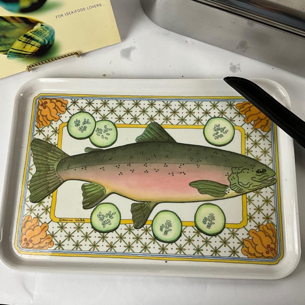 Large melamine fish tray with Inox Fish poacher pan , 10- lemon squeezers
