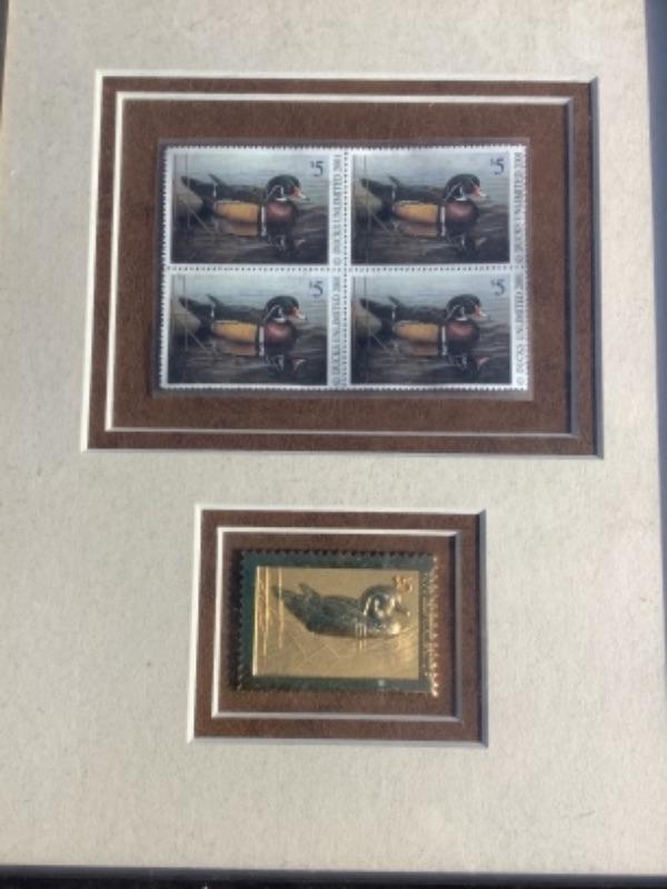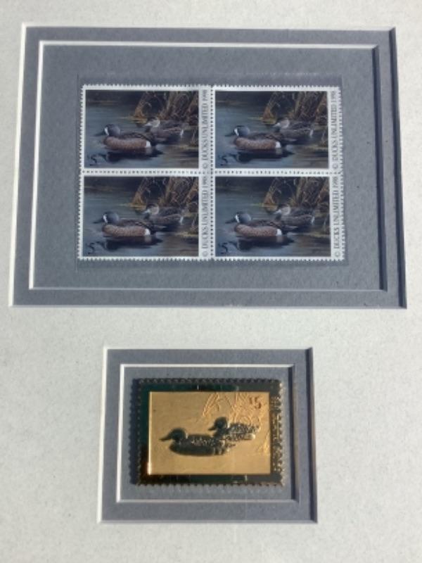 272 Pair of Framed Ducks unlimited Stamp and Gold Piece Sets