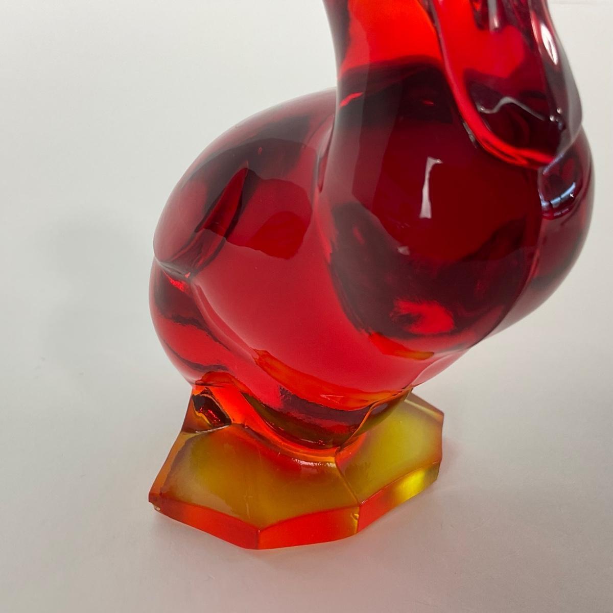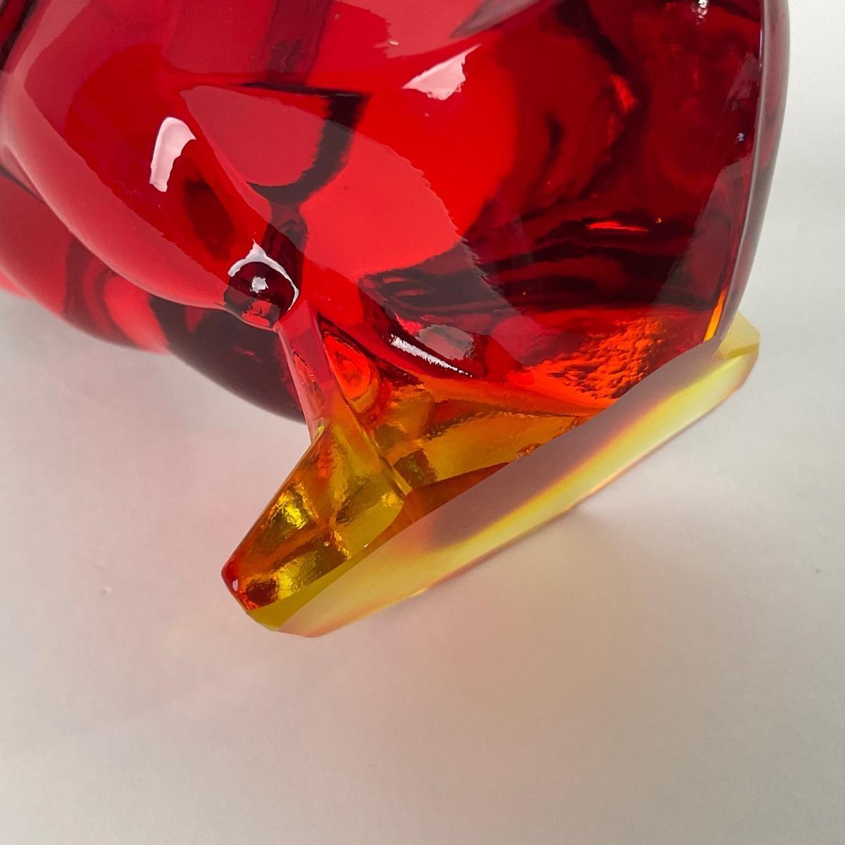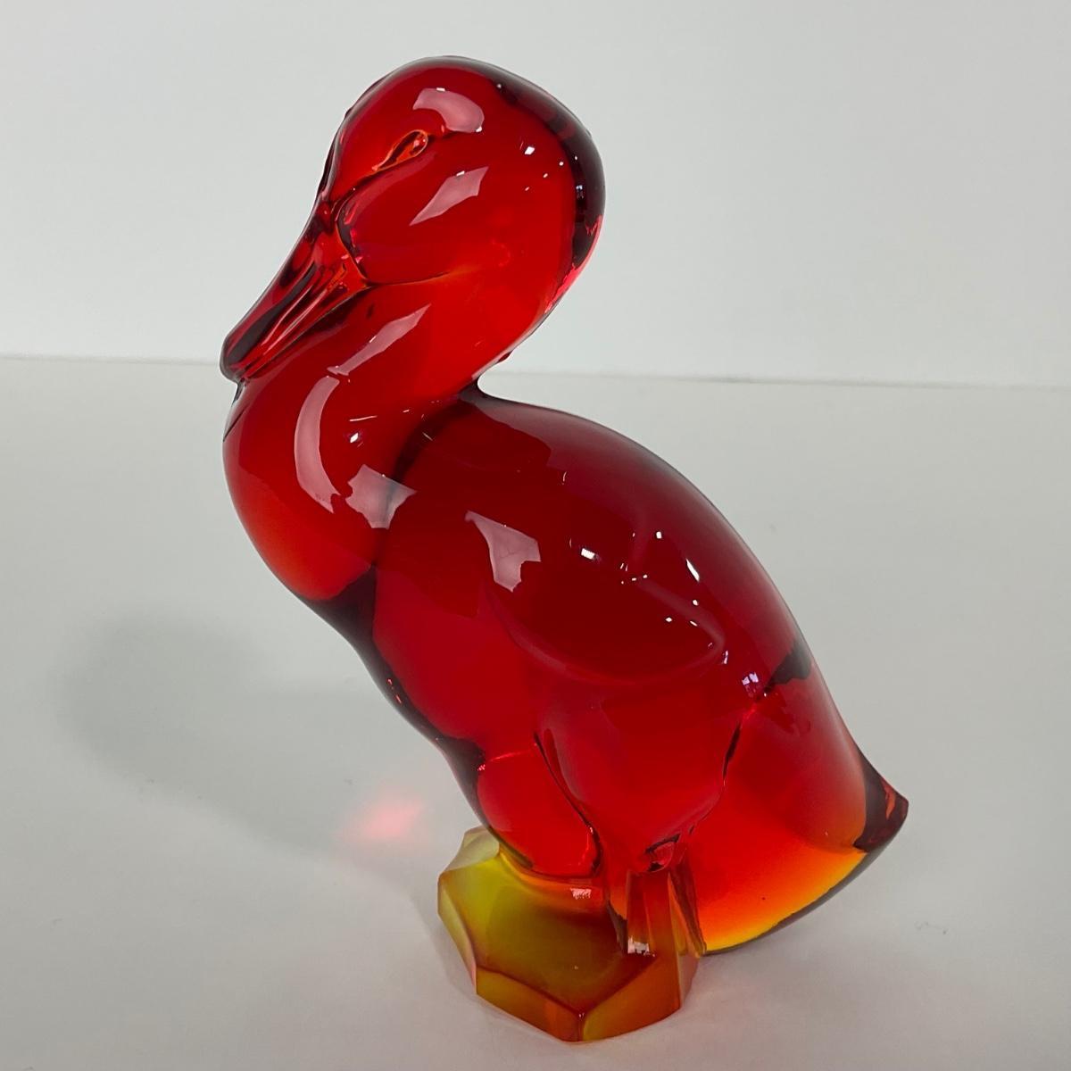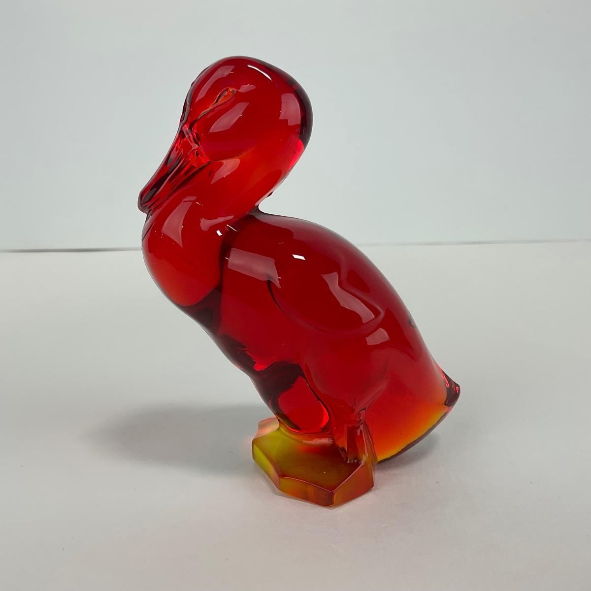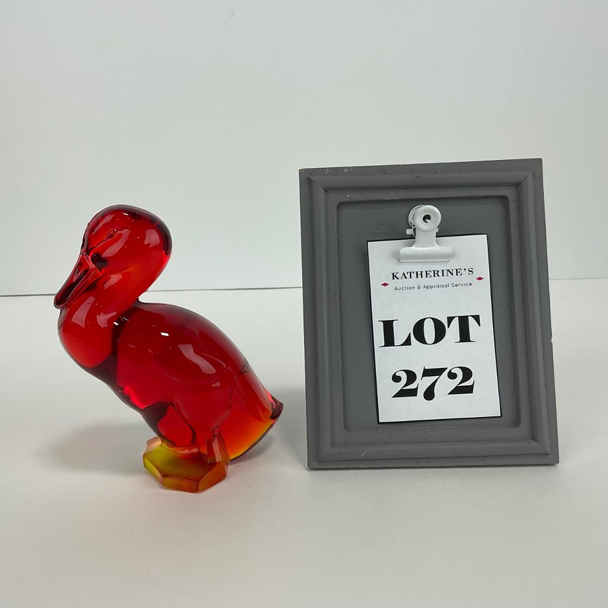 One Viking mid century Amberina fighting duck with head up. This piece does have a few minor flea bite chips at the base and bottom, but otherwise seems to be in great condition. Please see photos for details and condition. Any condition statement is given as a courtesy to a client, is an opinion, and should not be treated as a statement of fact. Reference to condition written, oral or within a condition report shall not be regarded as a full account of condition and may not include all defects, alterations, or restorations. Absence of a condition report does not imply a lot is flawless or lacking imperfections or damage. Katherine’s Auction & Appraisal Service shall have no responsibility for any error or omission. Returns shall not be accepted on the basis of condition. ::: Shipping is available on this lot. If you require shipping you must let us know at the close of the auction. We will coordinate with you after the item has been won. Shipping fees will include insurance up to or exceeding the value of all items being mailed. If you have any questions regarding this lot please contact the auctioneer either via this website, by direct email or by phone. PICK UP TIMES and other important information can be found in the TERMS and DESCRIPTION of the auction. Please take a look for pertinent information. Thanks!
