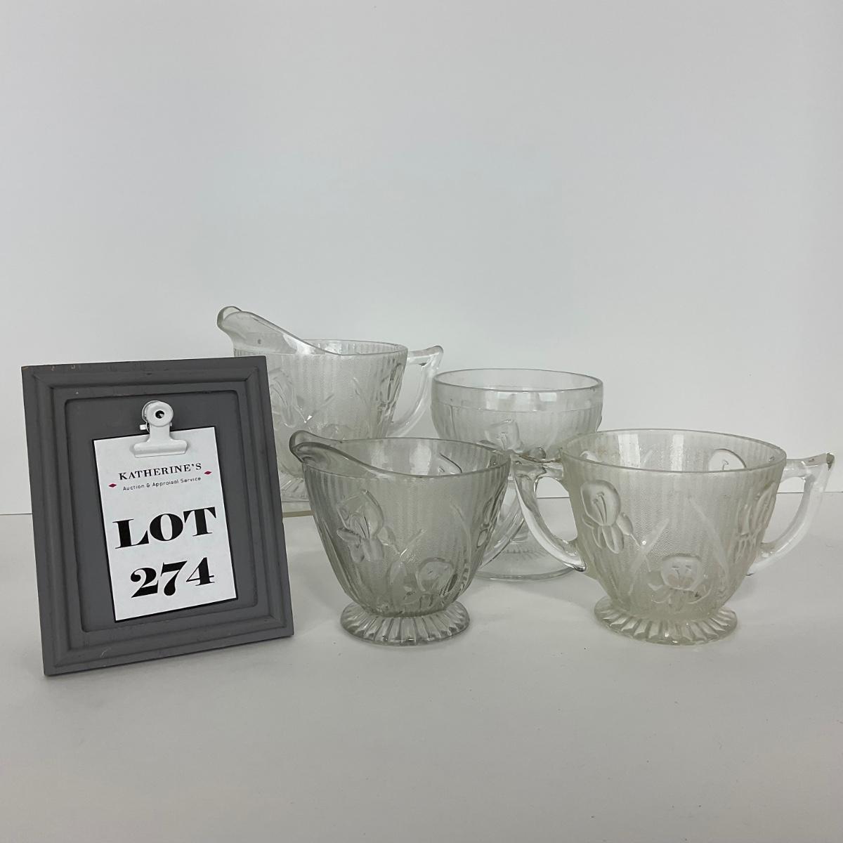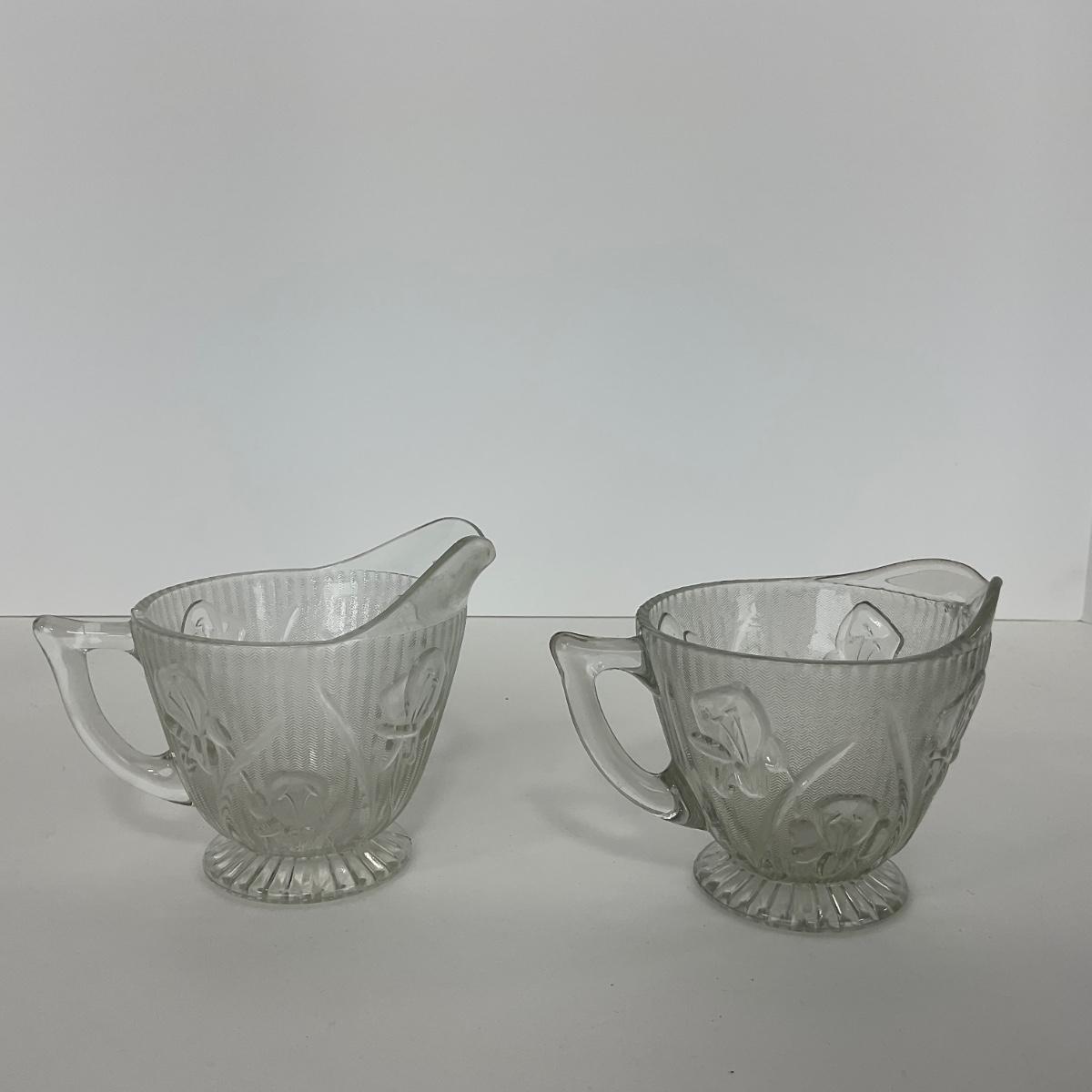 -274- GLASSWARE | Iris & Herringbone Jeanette Glass Co. | Creamers , Sugar, & Sherbet