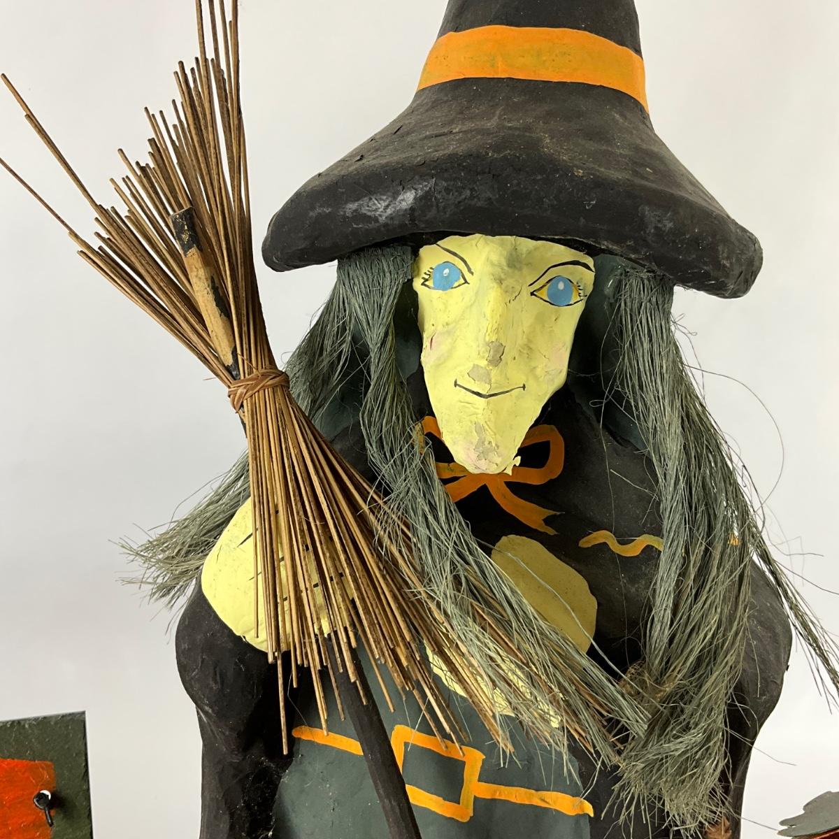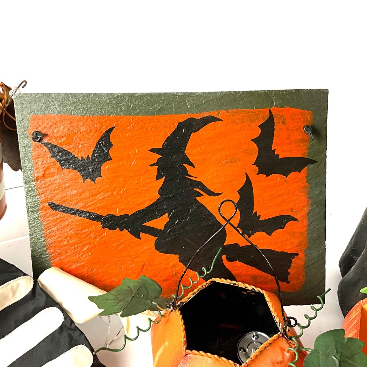 274 Halloween Lot with Paper Mache Witch, Slate Wall Hanging