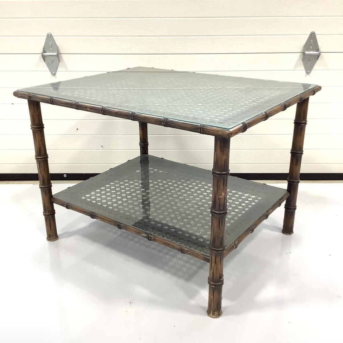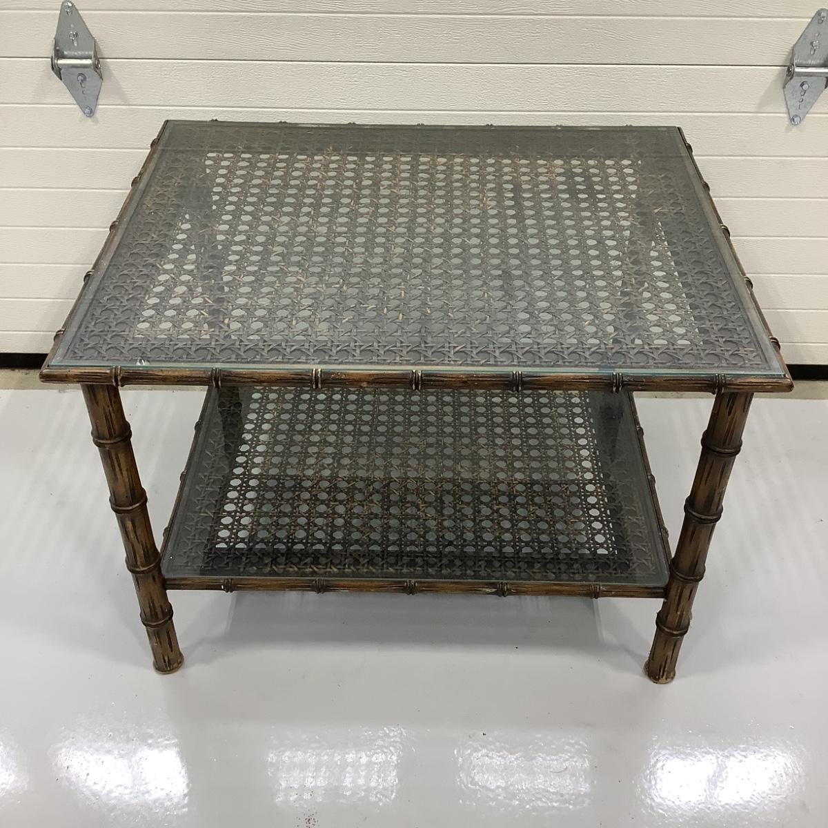 274 Two Tier Cane Glass top End Table
