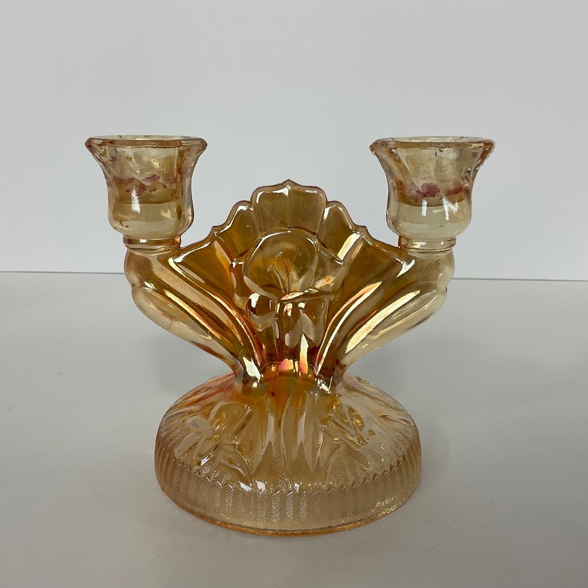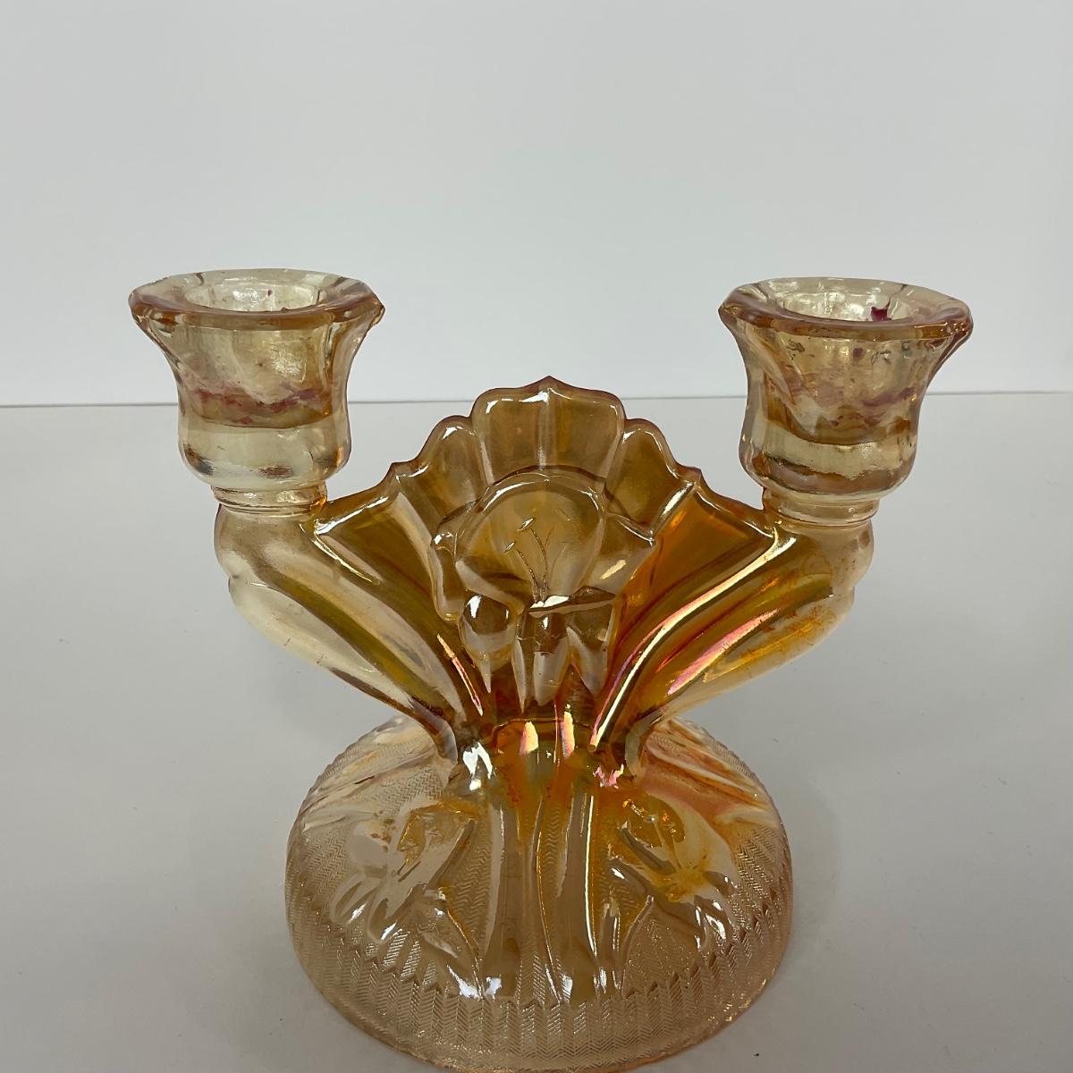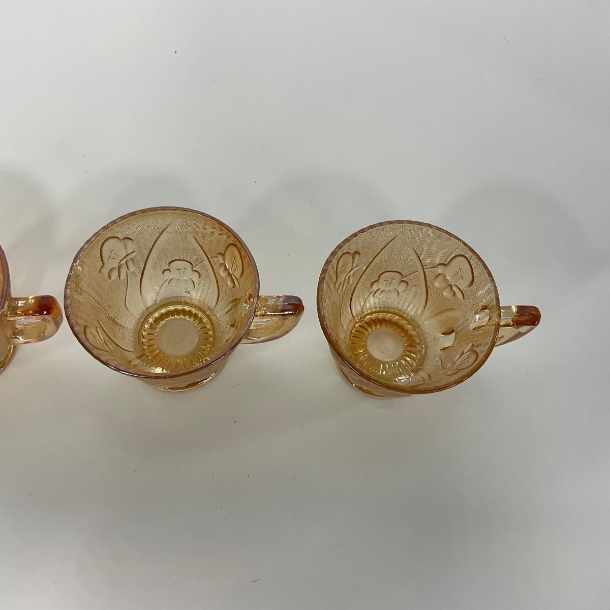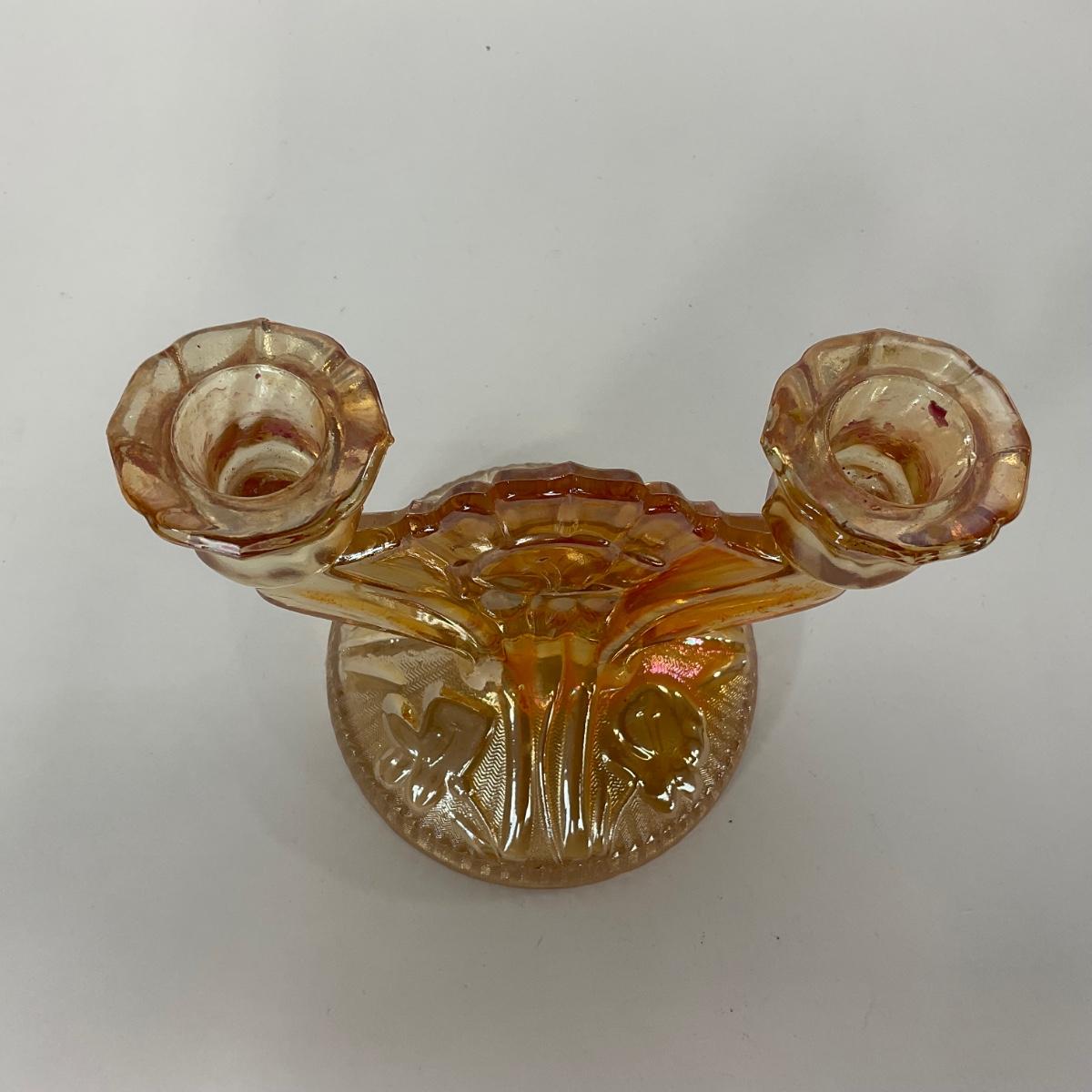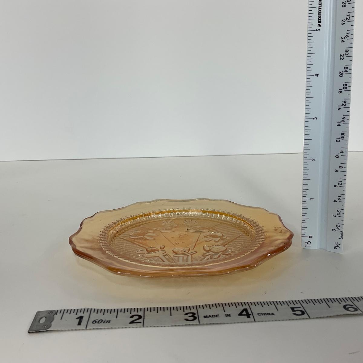 Seven pieces of peach Iris and Herringbone Jeanette Glass Co. (1928-1932) including one candlestick, one creamer, one sherbet, one small plate, and three glasses. Please see photos for details and condition. ::: Shipping is available on this lot. If you require shipping you must let us know at the close of the auction. We will coordinate with you after the item has been won. Shipping fees will include insurance up to or exceeding the value of all items being mailed. If you have any questions regarding this lot please contact the auctioneer either via this website, by direct email or by phone. PICK UP TIMES and other important information can be found in the TERMS and DESCRIPTION of the auction. Please take a look for pertinent information. Thanks!