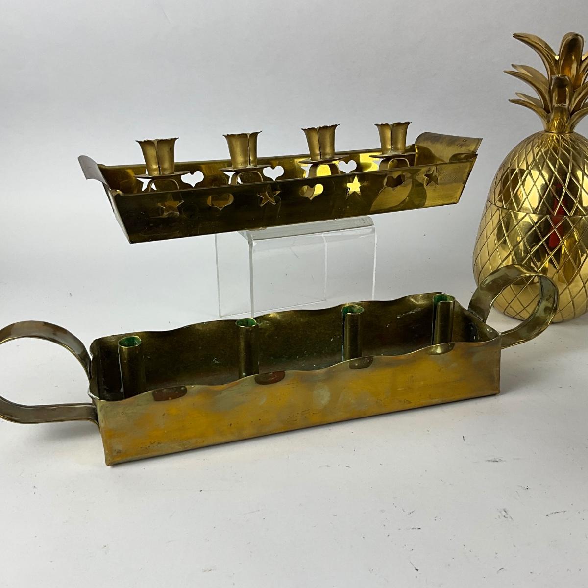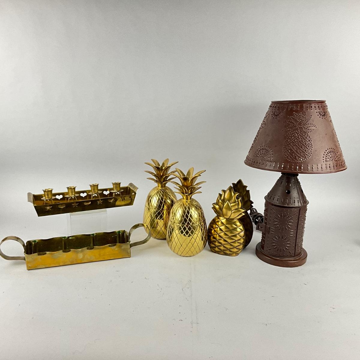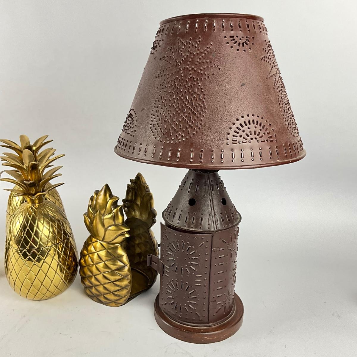 275 Punch Tin Lamp with Ethan Allen Brass Pineapple Candle Holders