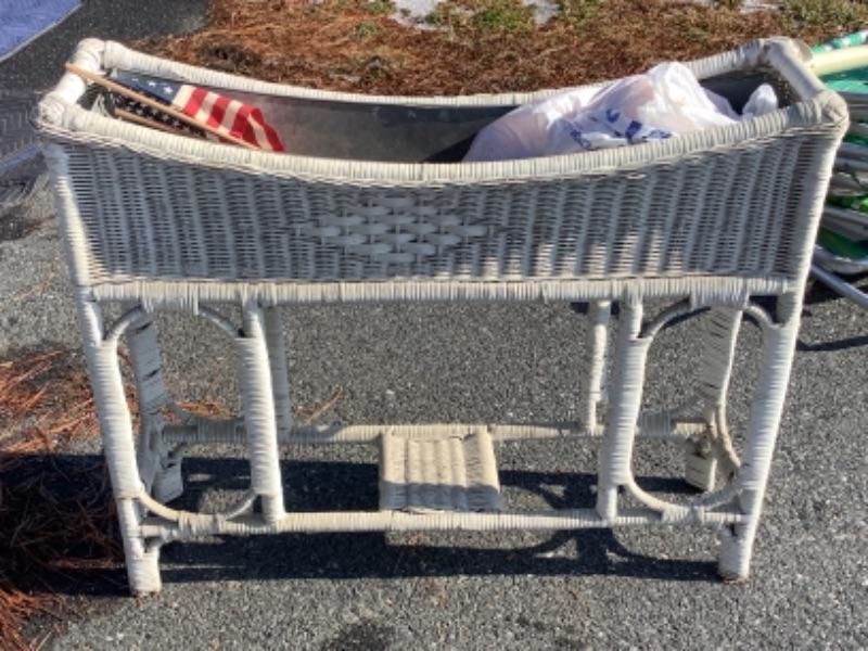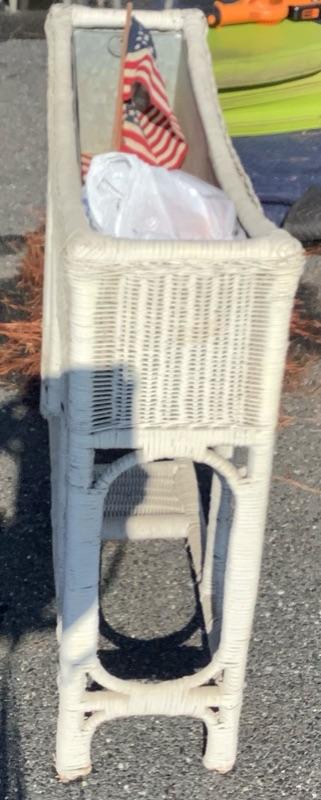 Wicker planter box with galvanized steel insert measures 30” high 36” x 10”