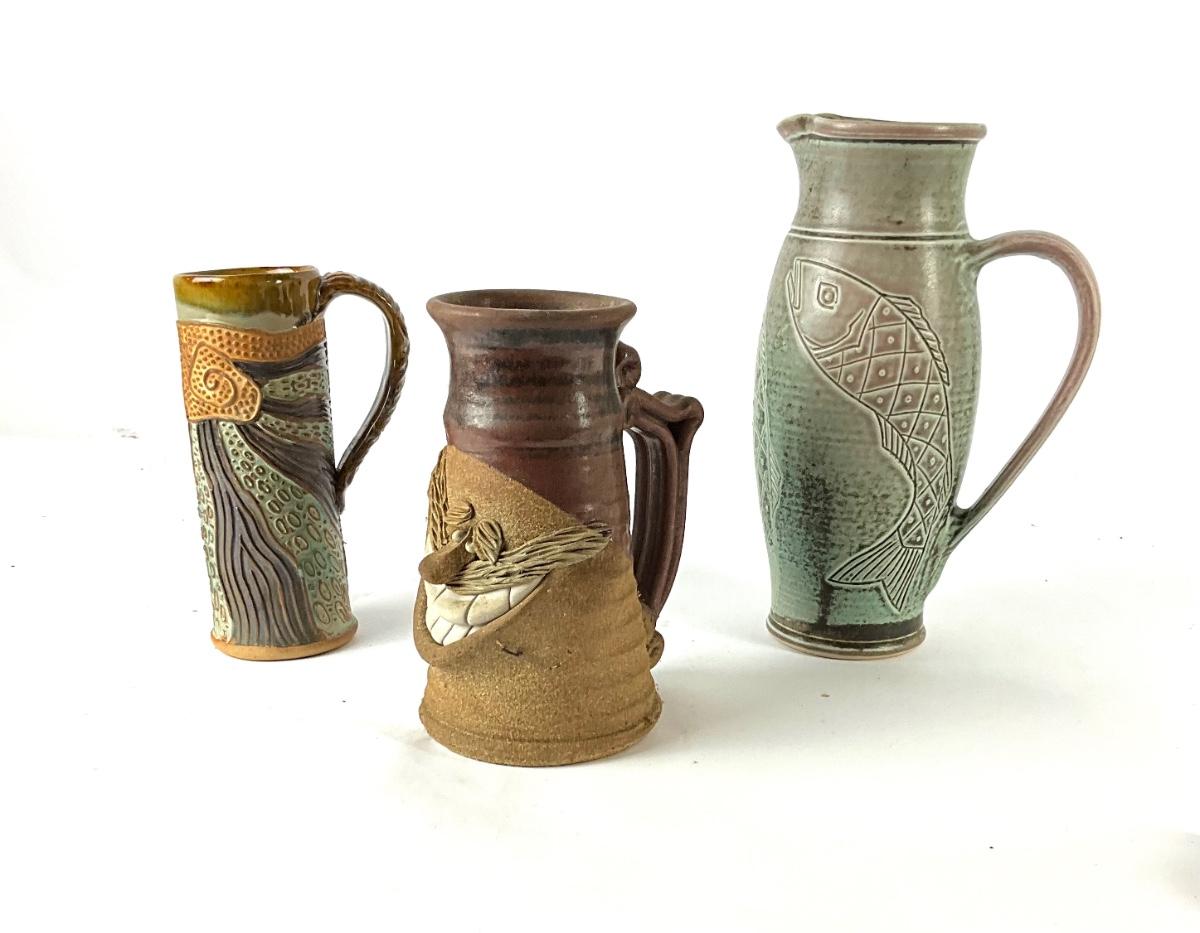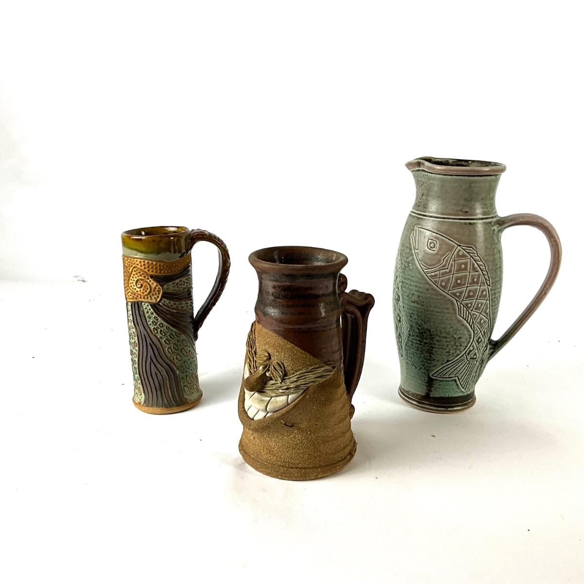 277 Bumblebee Pottery Mug, Russell Turnage Fish Pitcher and Character Mug