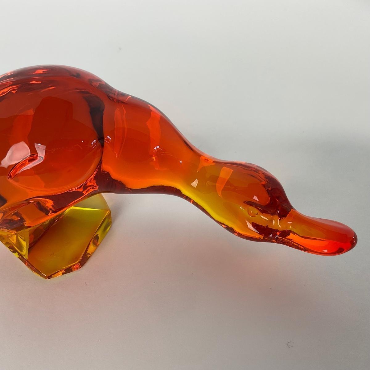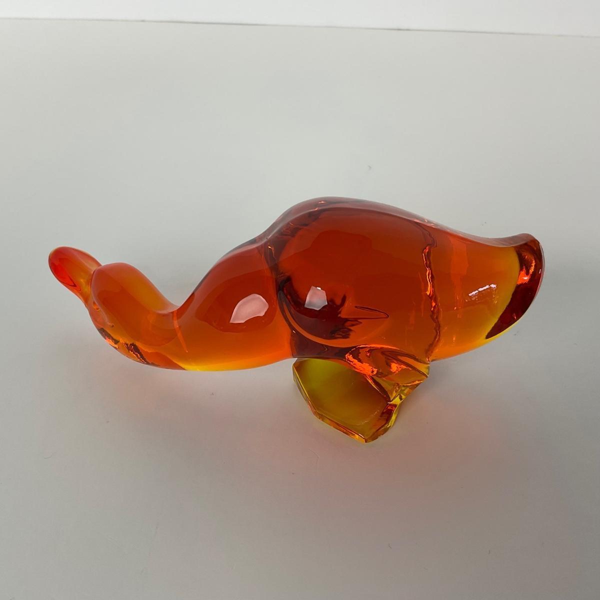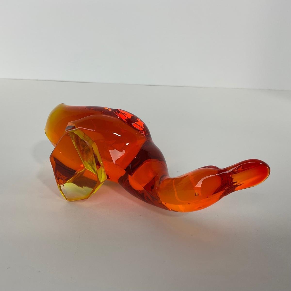 One Viking orange amberina epic fighting duck with head down. 2 1/2 inches tall by 6 inches wide. This piece does have a few scuffs and minor scratches but in otherwise great shape. Please see photos for details and condition. Any condition statement is given as a courtesy to a client, is an opinion, and should not be treated as a statement of fact. Reference to condition written, oral or within a condition report shall not be regarded as a full account of condition and may not include all defects, alterations, or restorations. Absence of a condition report does not imply a lot is flawless or lacking imperfections or damage. Katherine’s Auction & Appraisal Service shall have no responsibility for any error or omission. Returns shall not be accepted on the basis of condition. ::: Shipping is available on this lot. If you require shipping you must let us know at the close of the auction. We will coordinate with you after the item has been won. Shipping fees will include insurance up to or exceeding the value of all items being mailed. If you have any questions regarding this lot please contact the auctioneer either via this website, by direct email or by phone. PICK UP TIMES and other important information can be found in the TERMS and DESCRIPTION of the auction. Please take a look for pertinent information. Thanks!