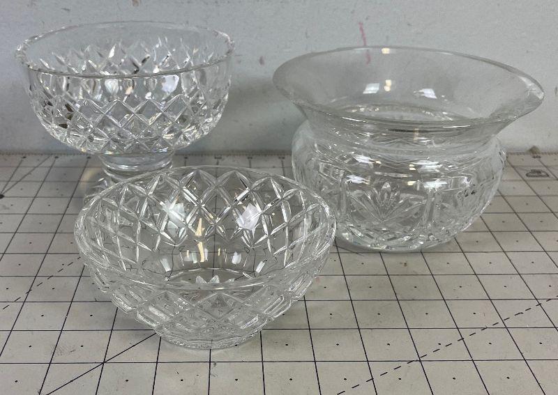One is Waterford and has a small chip. Other two are unmarked, no chips.