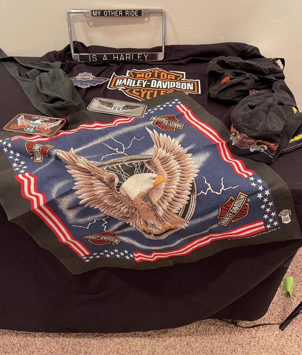 #278 Harley Davidson Shwag: T-shirt, hats, Patches