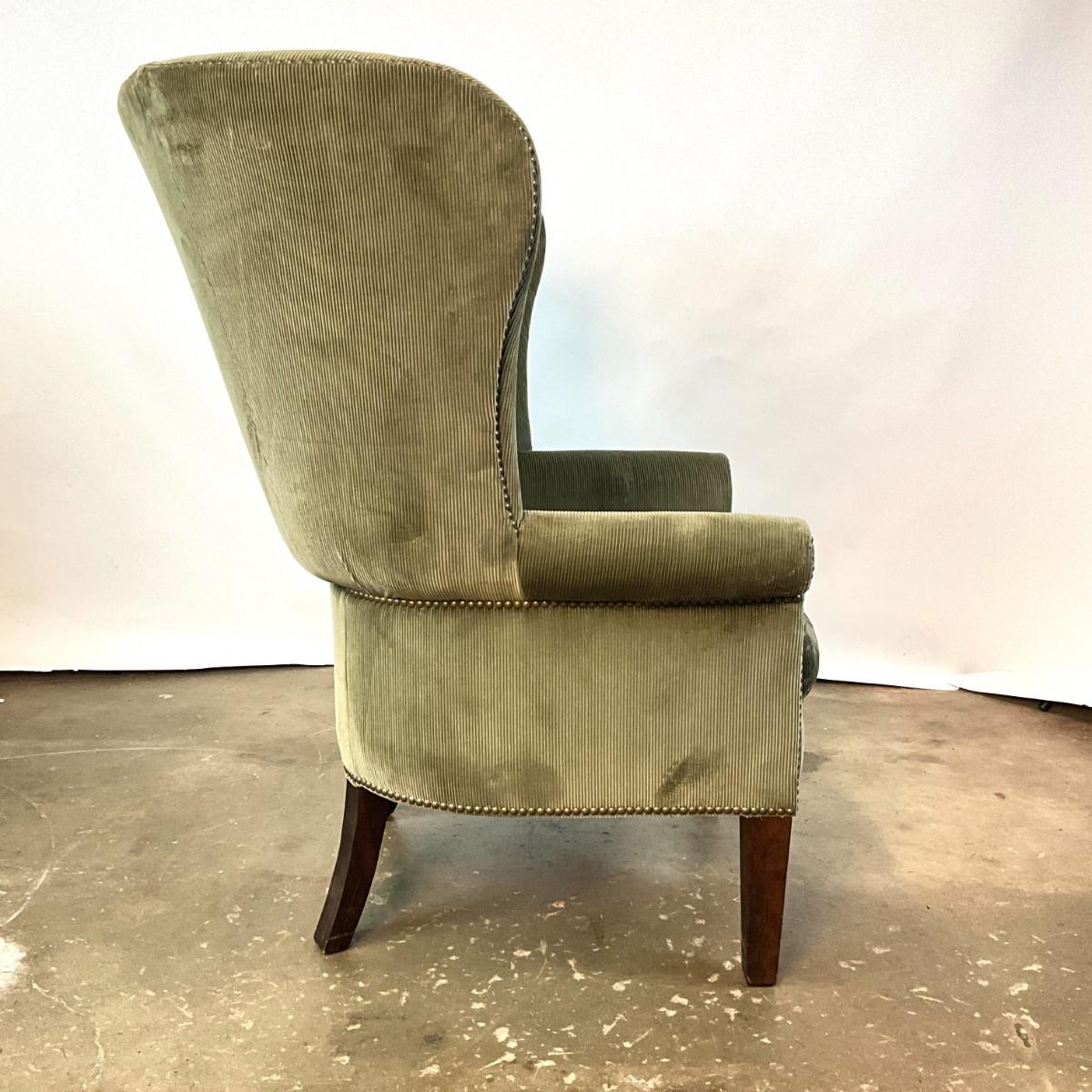 Kerry Chair, Brass nailhead trim. Green corduroy fabric.
