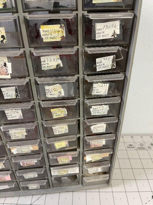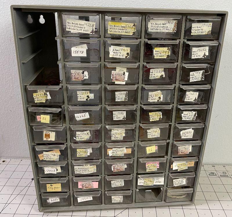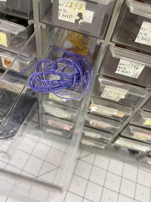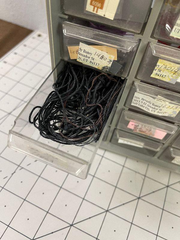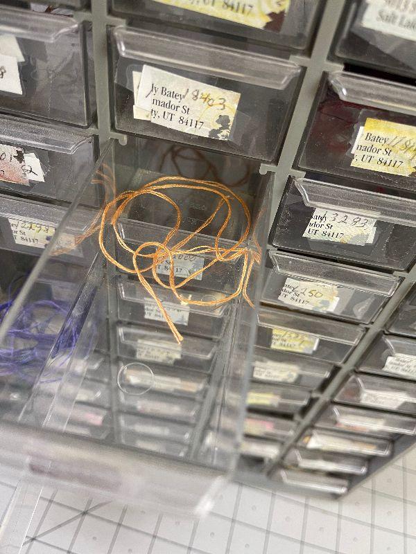 Missing 3 small drawers, however, full of embroidery thread. Get your thread on.
