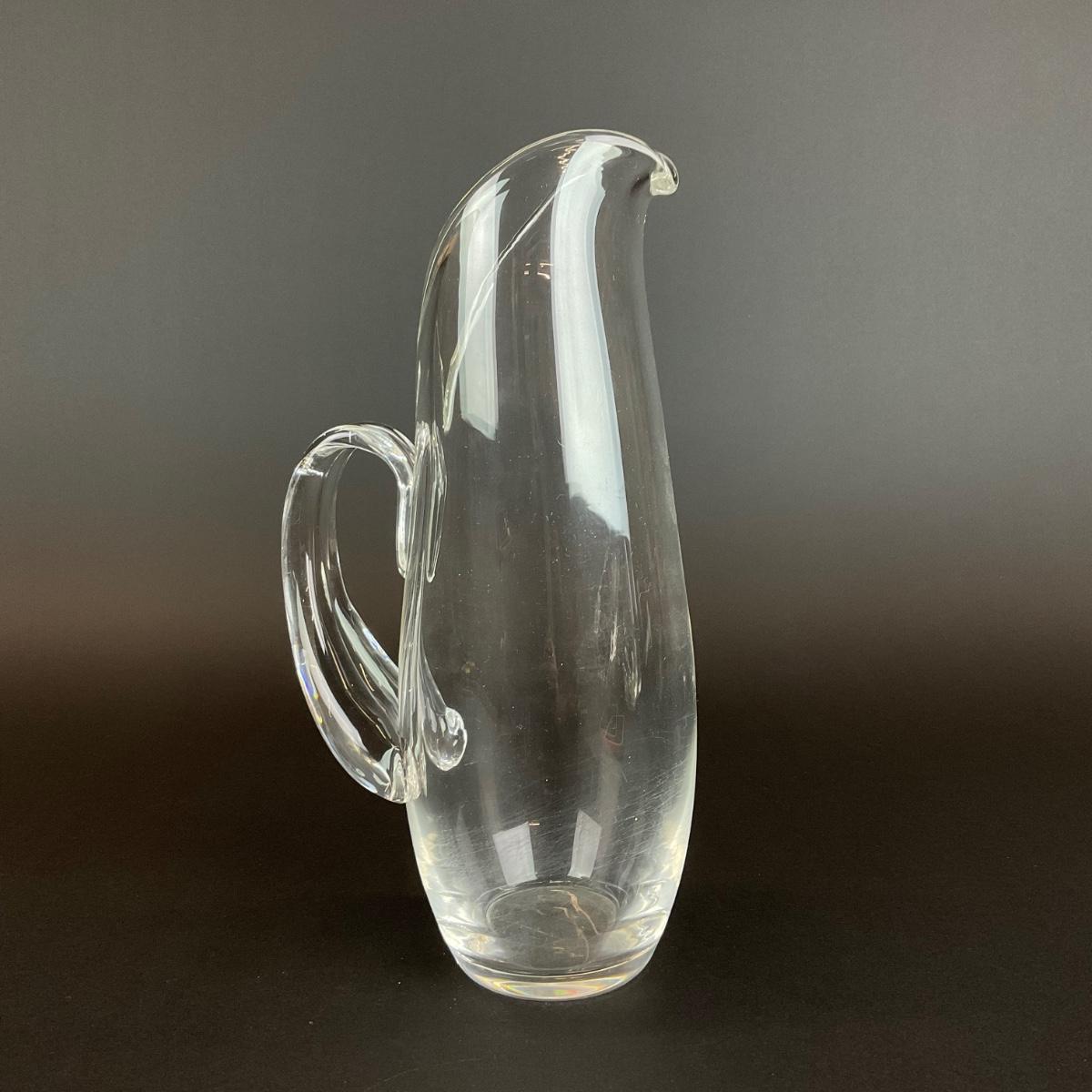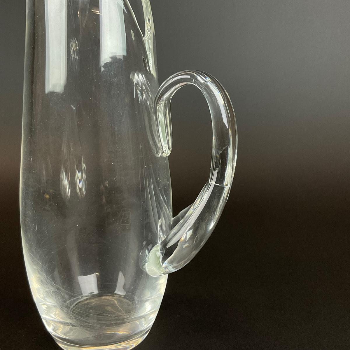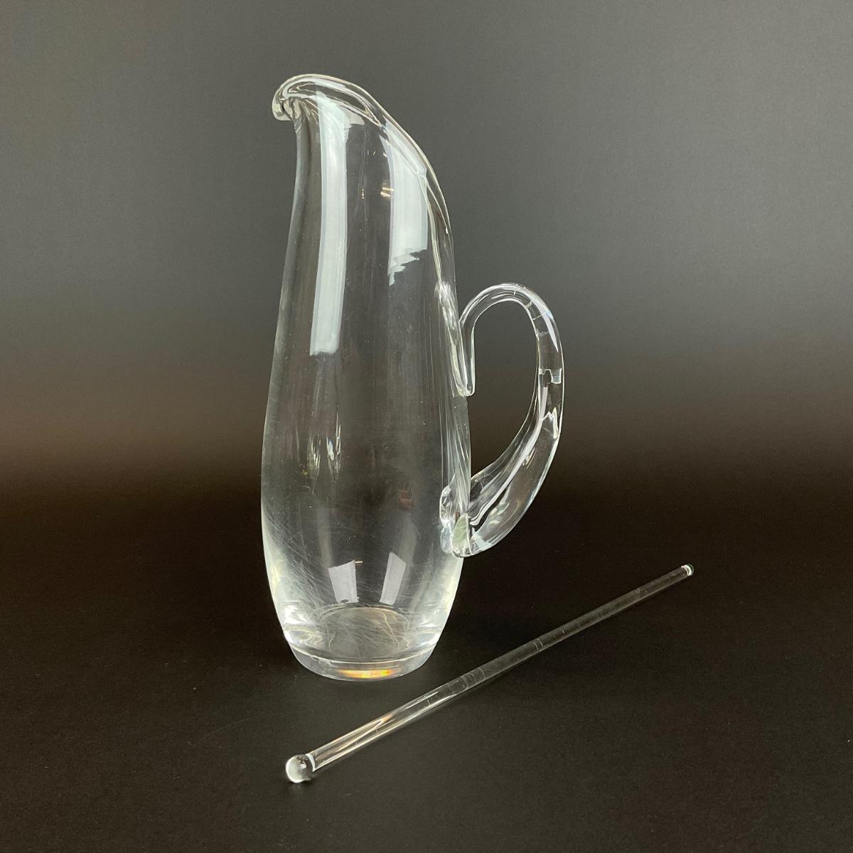 279 Signed Steuben Lloyd Atkins 1955 Glass Water Pitcher with Stir Stick