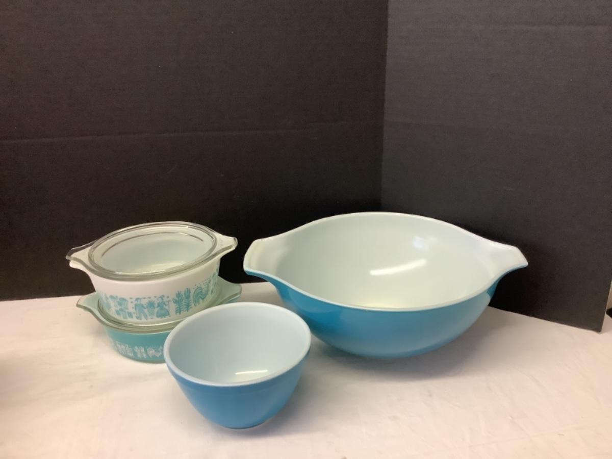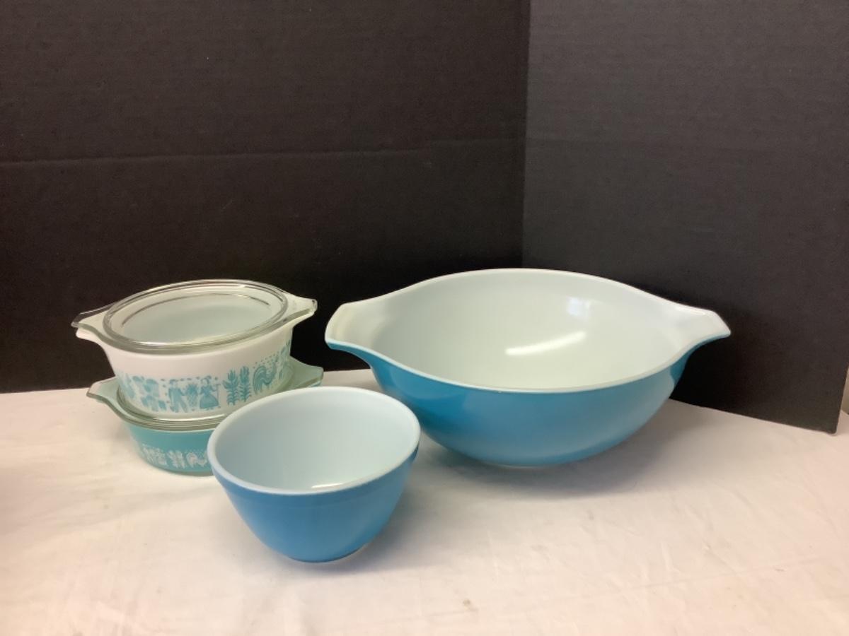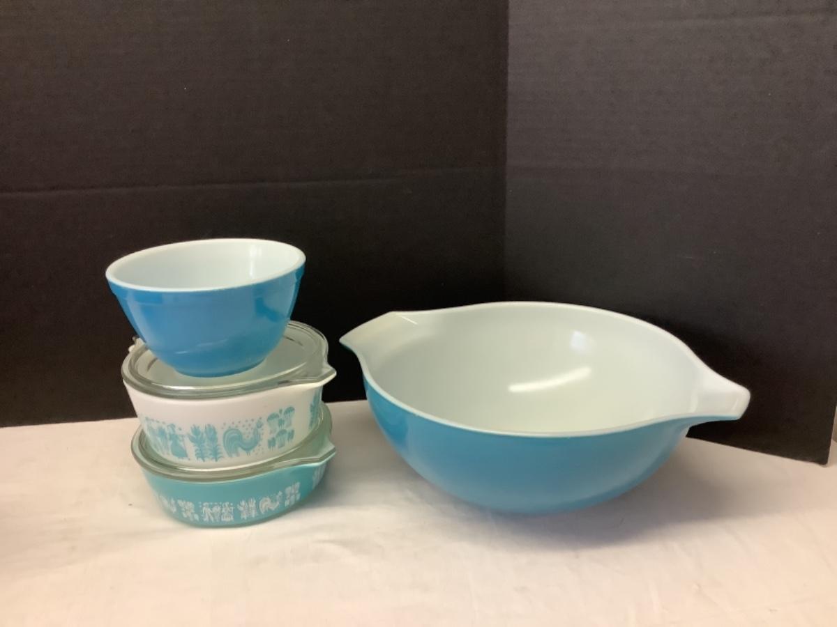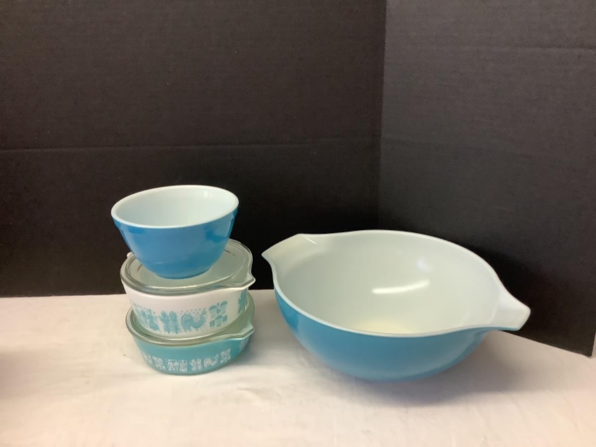 279. Vintage Pyrex Turquoise & Turquoise/White